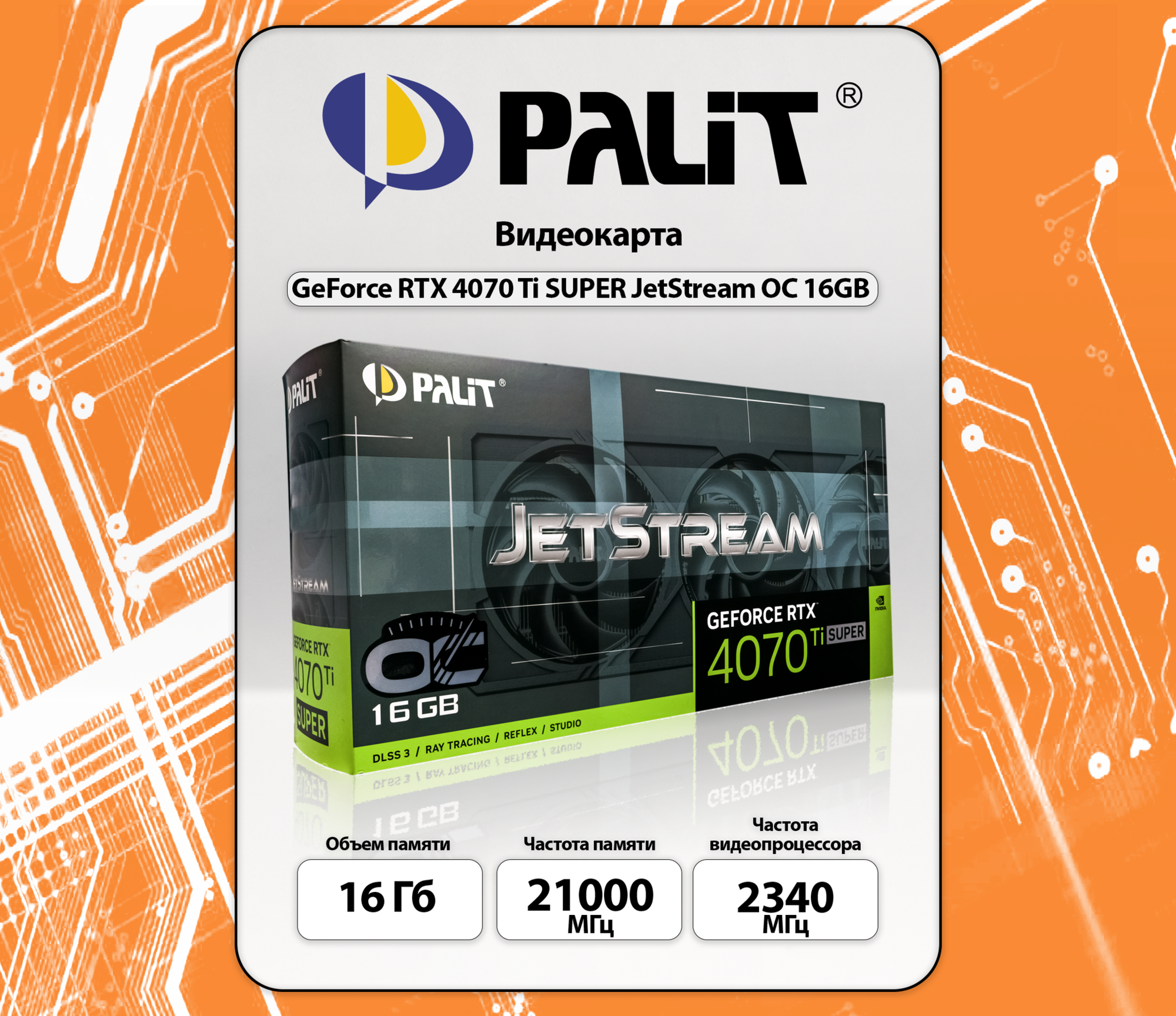 Видеокарта Palit NVIDIA GeForce RTX 4070Ti SUPER OC Super JetStream, 16Gb GDDR6X, 256 бит (NED47TSS19T2-1043J)