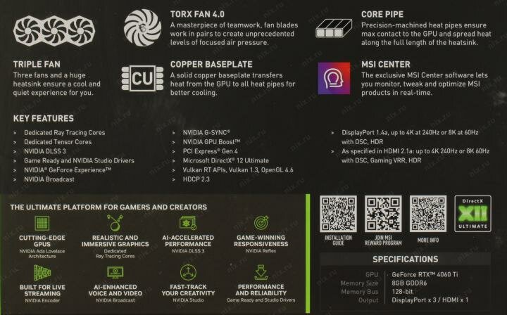 Ниже Вы можете прочитать отзывы на Видеокарта MSI GeForce RTX 4060 Ventus 3X, 8 ГБ, GDDR6, водяное охлаждение, ознакомится с подробными характеристиками, посмотреть интересные обзоры и фотографии на Видеокарта MSI GeForce RTX 4060 Ventus 3X, 8 ГБ, GDDR6, водяное охлаждение.