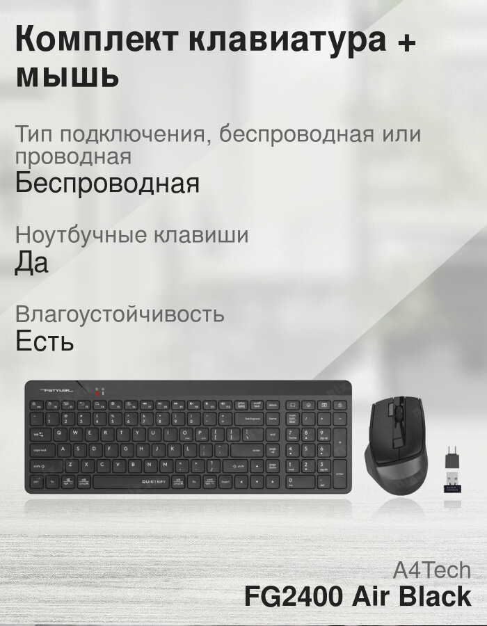Комплект клавиатура+мышь A4Tech Fstyler FG2400 Air черный/черный (fg2400 air black)