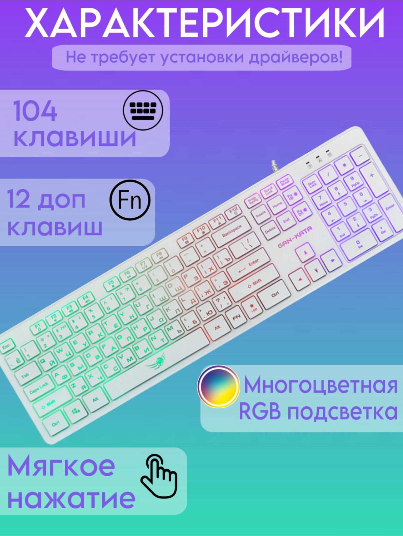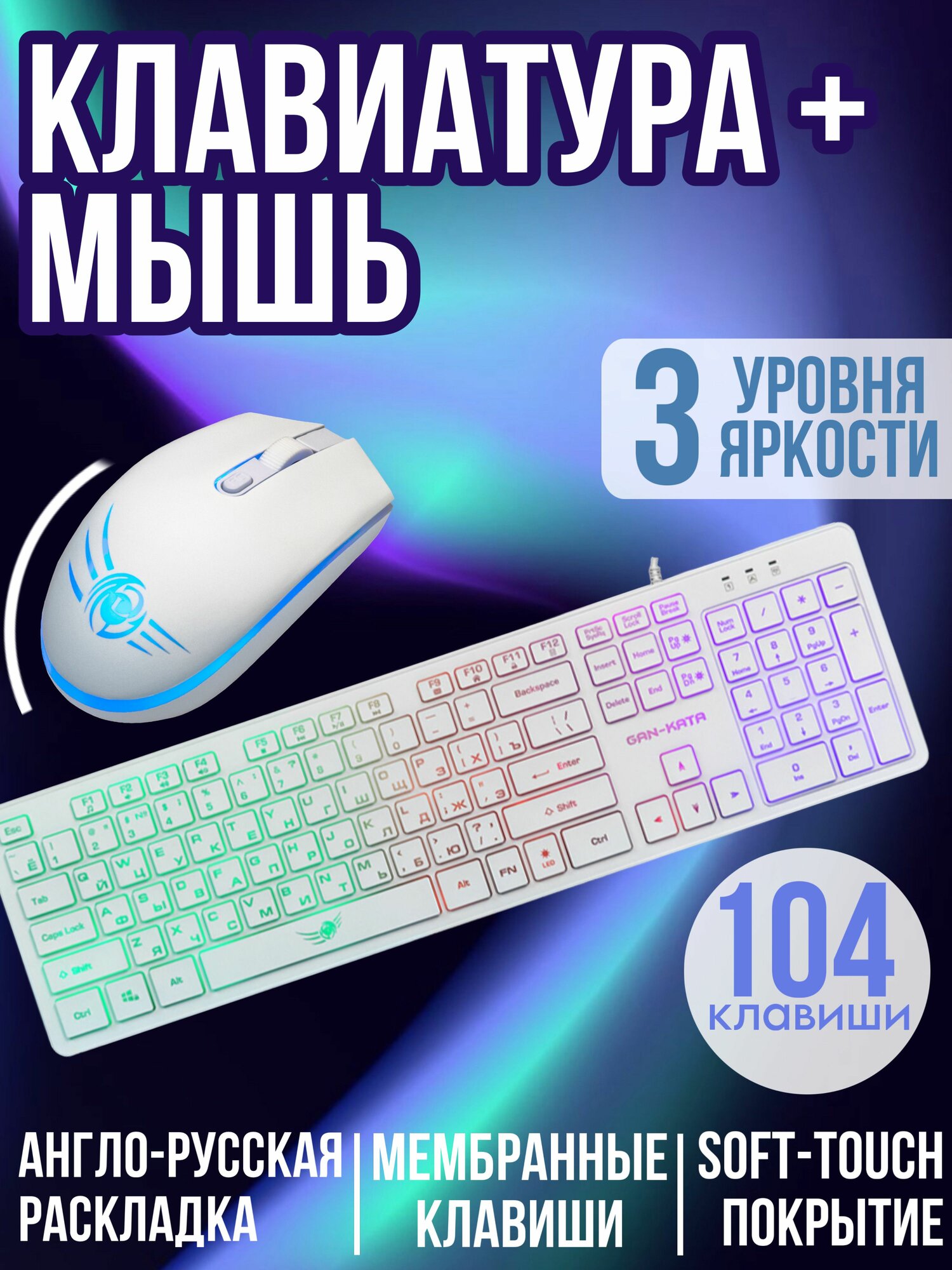 Клавиатура+мышь Dialog Проводной игровой набор Kmgk-1707u White Gan-Kata - клавиатура + опт. мышь с