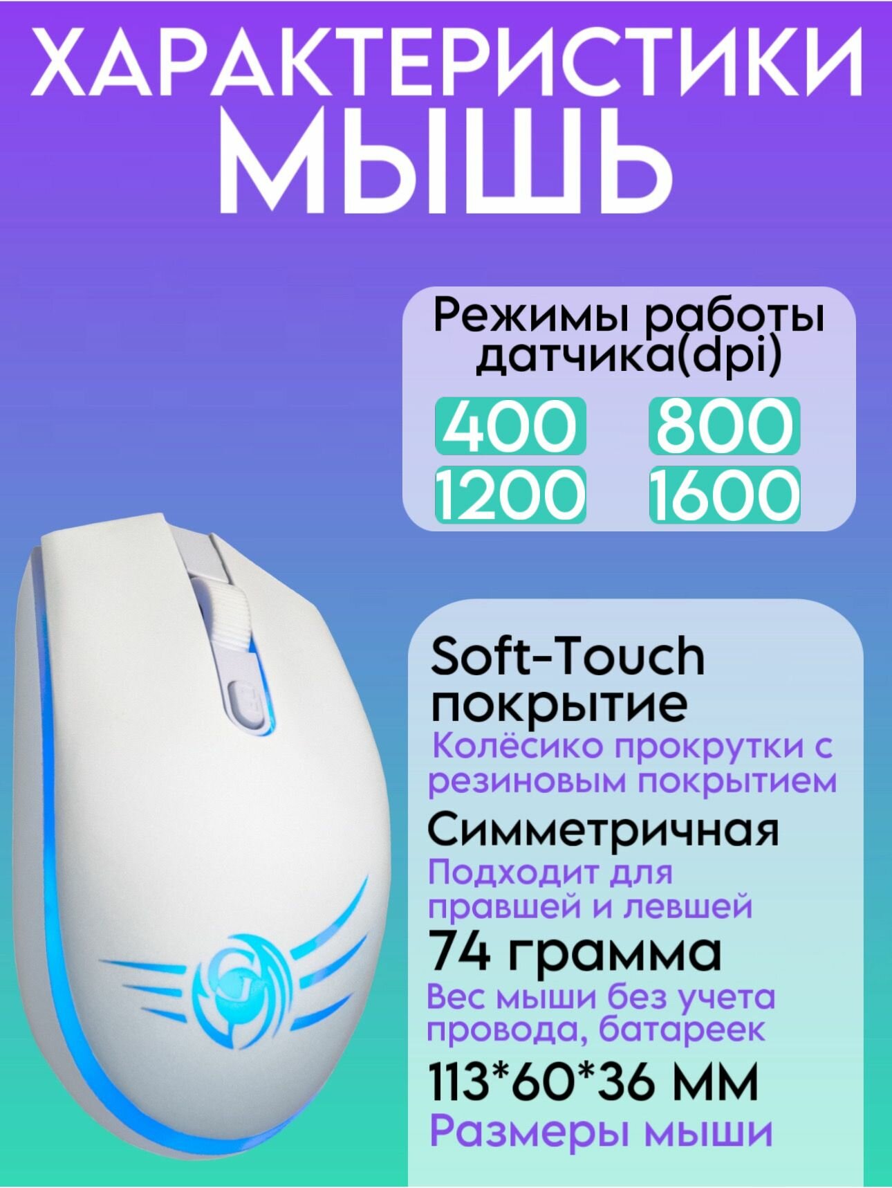 Игровой комплект мышь + клавиатура KMGK-1707U WHITE