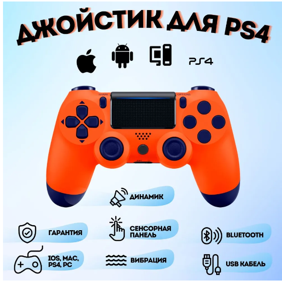 Беспроводной джойстик (геймпад) для PS4, Оранжевый / Bluetooth