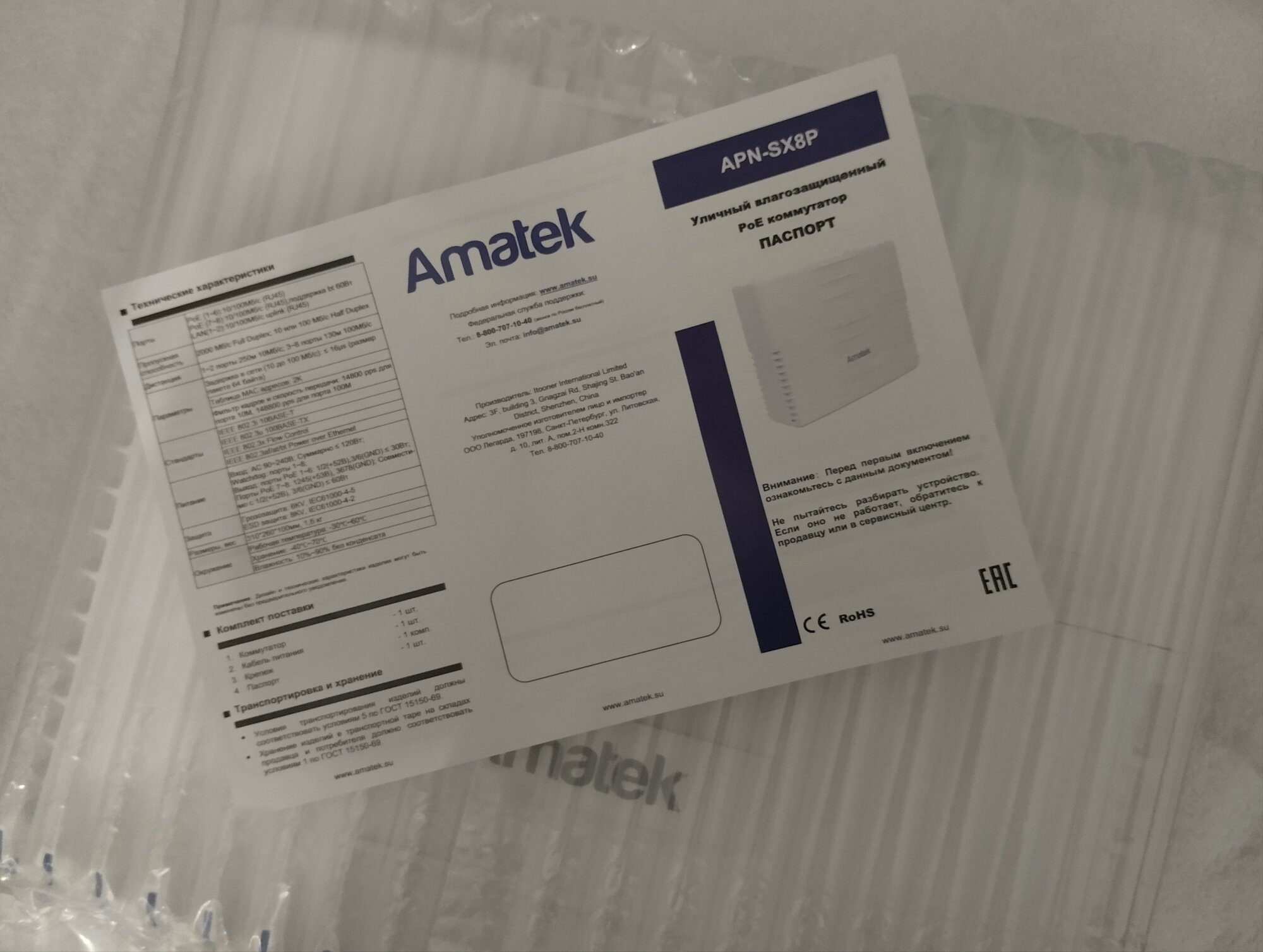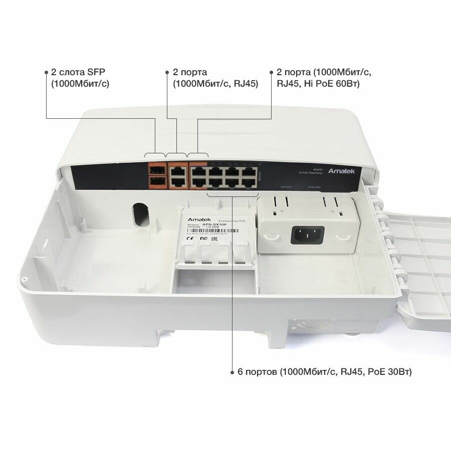 Коммутатор PoE уличный Amatek APN-SX8P ( Amatek APN-SX8P). интересное: