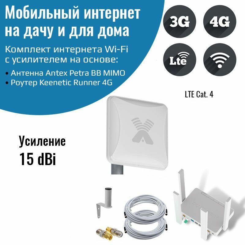 Усилитель интернета 4g комплект роутер Keenetic Runner 4G с уличной антенной Petra BB MIMO 3G/4G интересное: