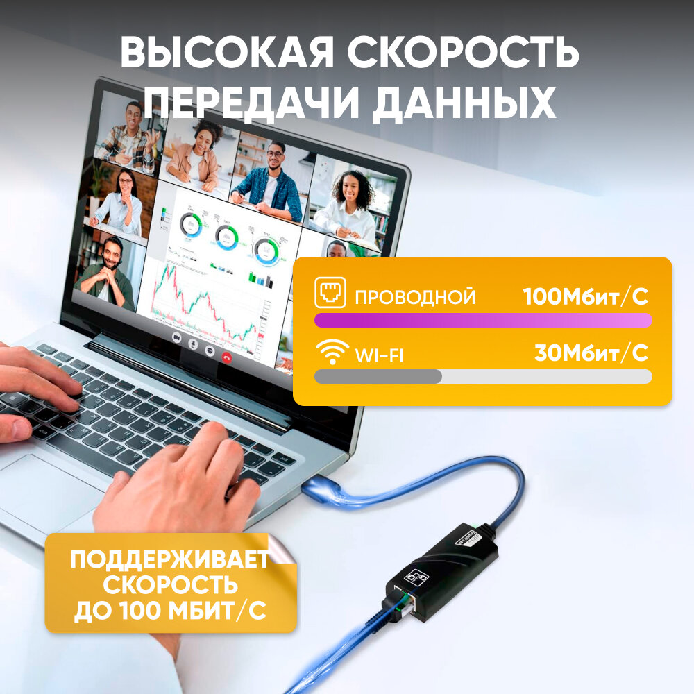 Сетевой адаптер для LAN-соединения USB 3.0 на RG45 Ethernet до 100Mbps / внешняя сетевая карта для ноутбука / Ethernet интересное: