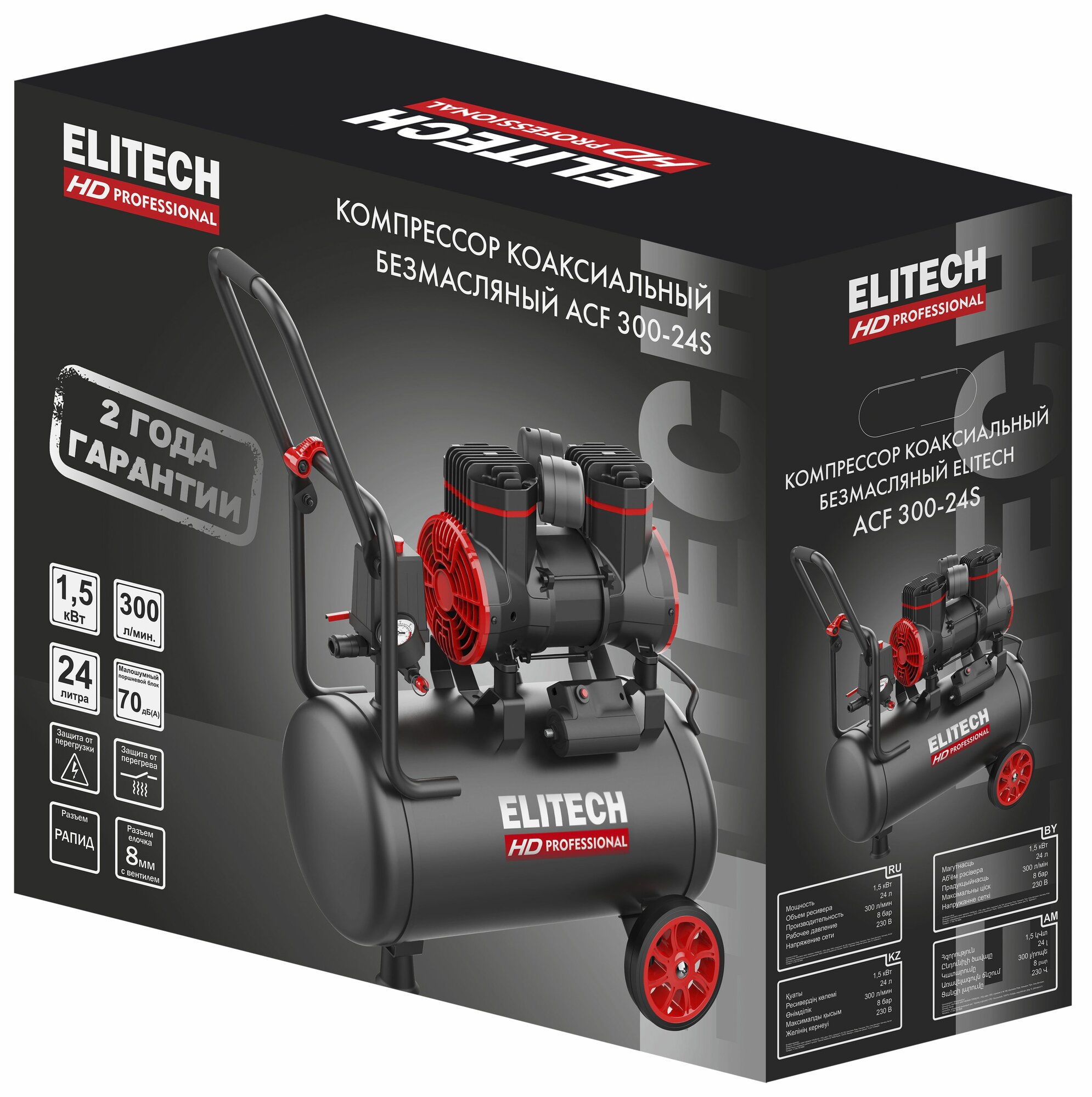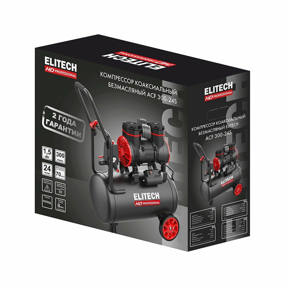 Компрессор поршневой Elitech ACF 300-24S безмасляный 300л/мин 24л 1500Вт черный/красный