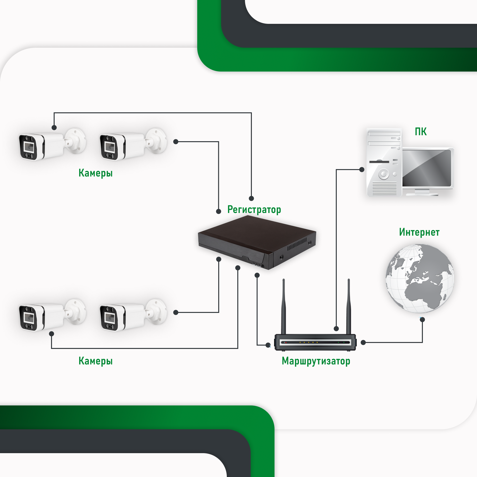 Комплект видеонаблюдения AHD 4 уличные камеры и регистратор Novihome Pollux. Для дома, дачи, офиса