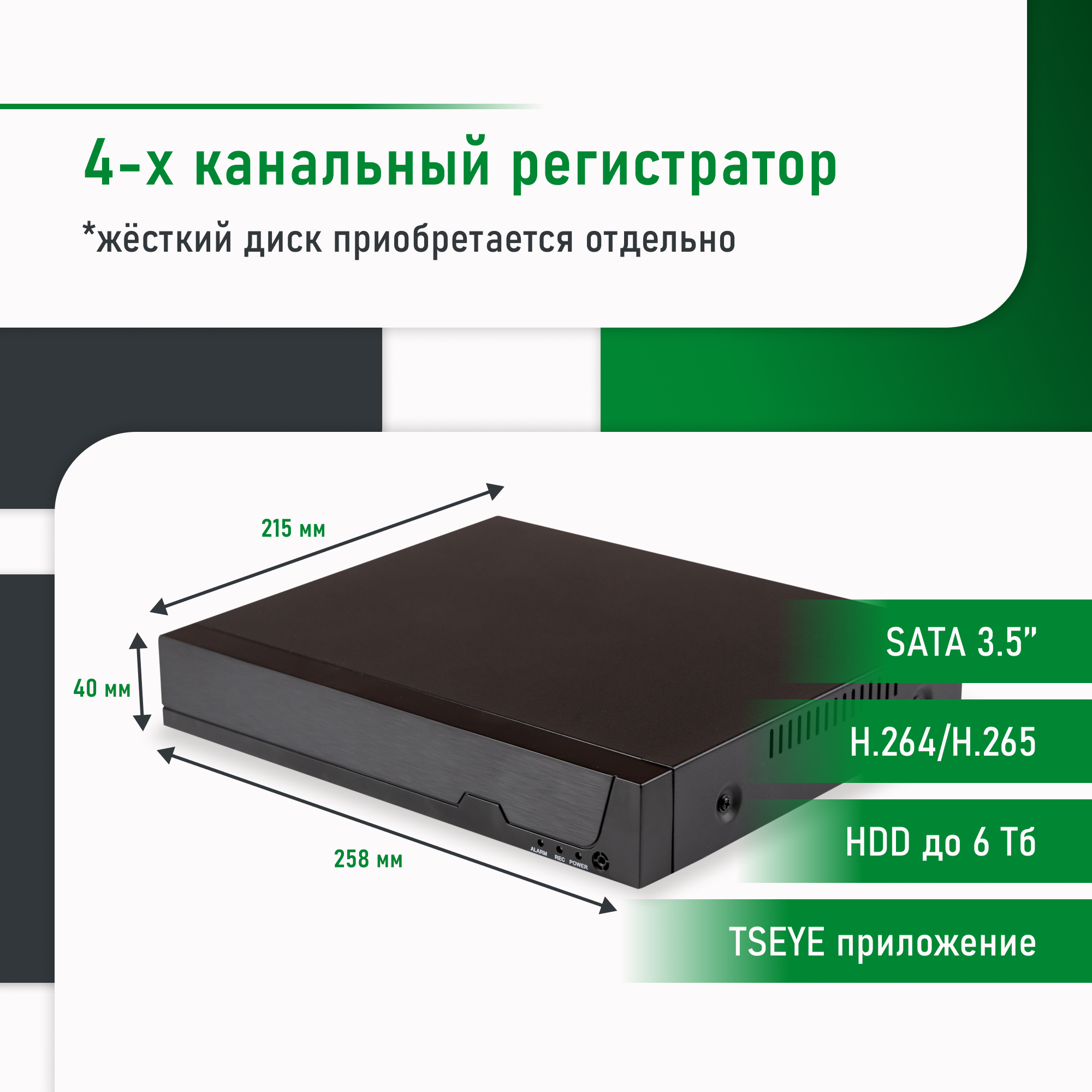 | Подробная комплектация | 1) Видеорегистратор (без HDD) x 1 шт. 2) AHD видеокамеры x 4 шт. 3) Адаптер питания DC 12V 2A x 2шт. 4) USB мышь x 1шт. 5) Руководство пользователя /технический паспорт х 1шт. 6) Кабели BNC/ питания для подключения камер x 4 шт. 7) Кабель питания 1-4 x 1 шт. 8) Крепежный набор x 1 шт |