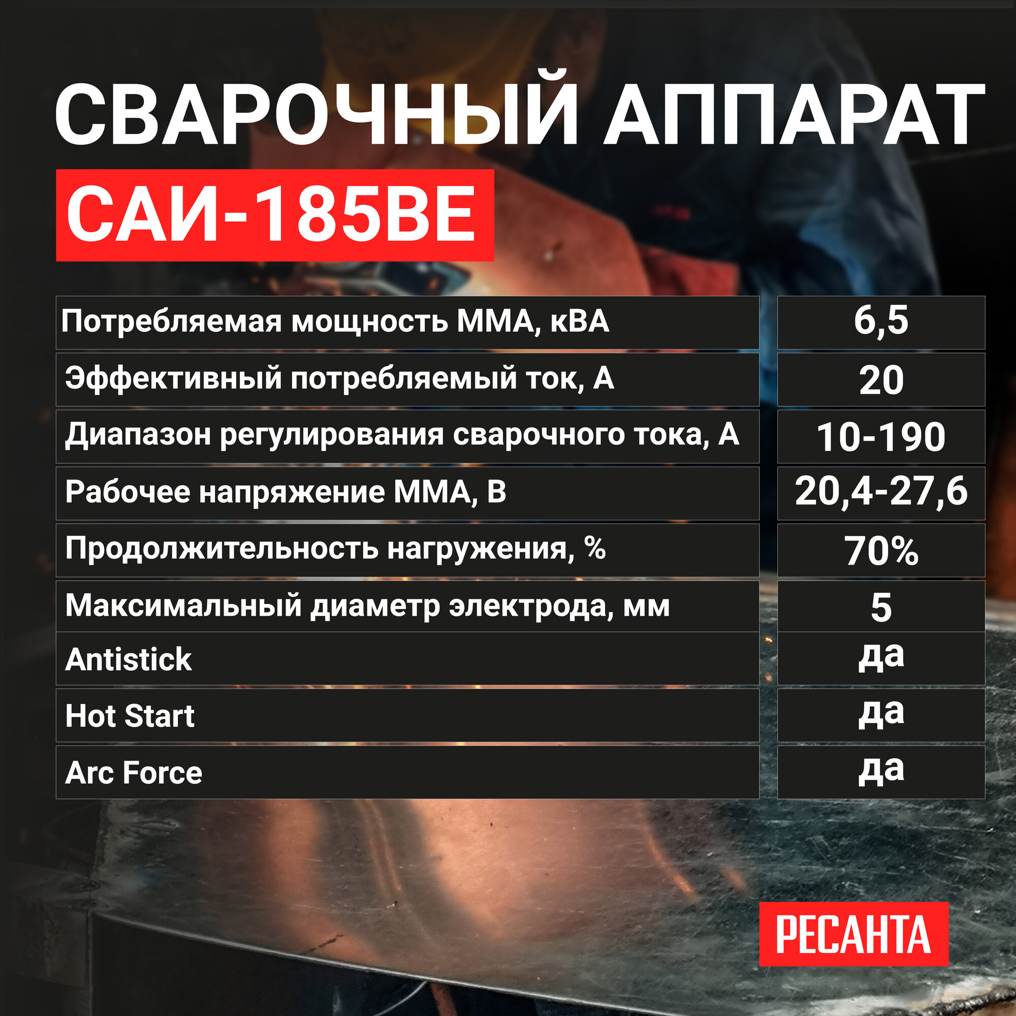 Сварочный аппарат инверторный САИ-185 BE Ресанта, ММА, 10-190А интересное: