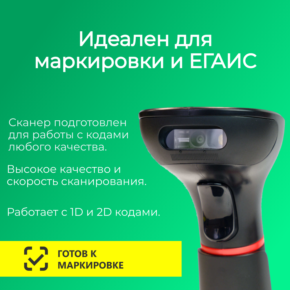 Беспроводной сканер штрих-кода МойPOS MSC-9516W2D, арт. 4534, 2D, черный, без подставки Cradle