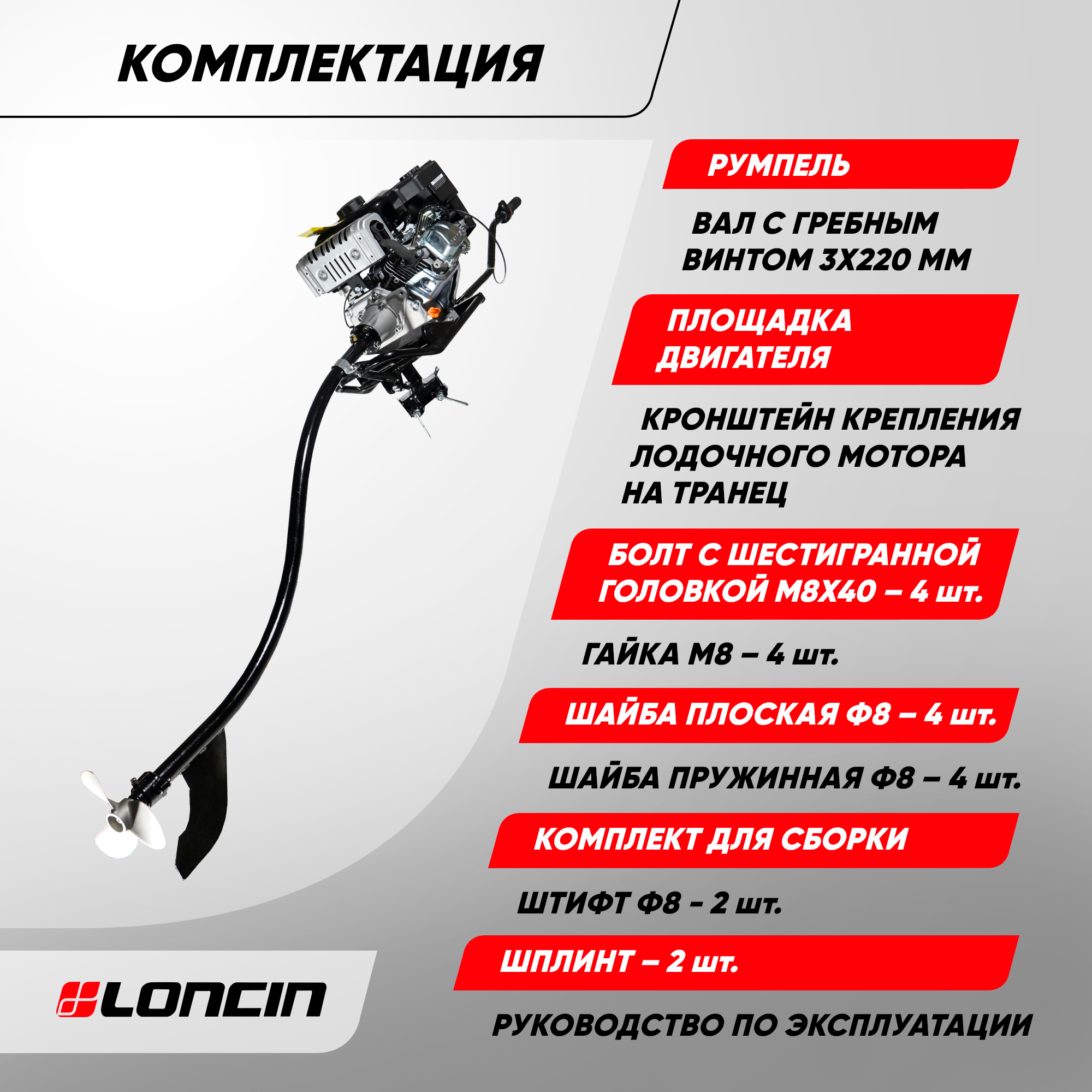 | Комплектация | Мотор лодочный болотоход Loncin LC170FA документация |
