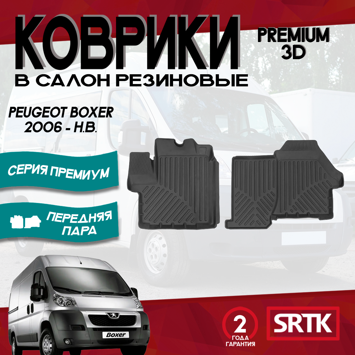 Коврик Салона Peugeot Boxer (06-) 3D Резина Черный (2 Предм.) Premium Srtk SRTK арт. PR.PG.BOX.06G.02047