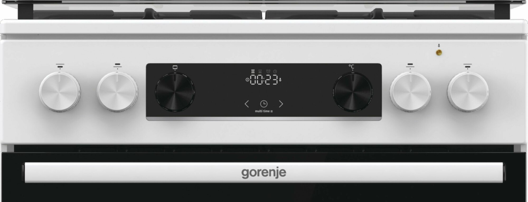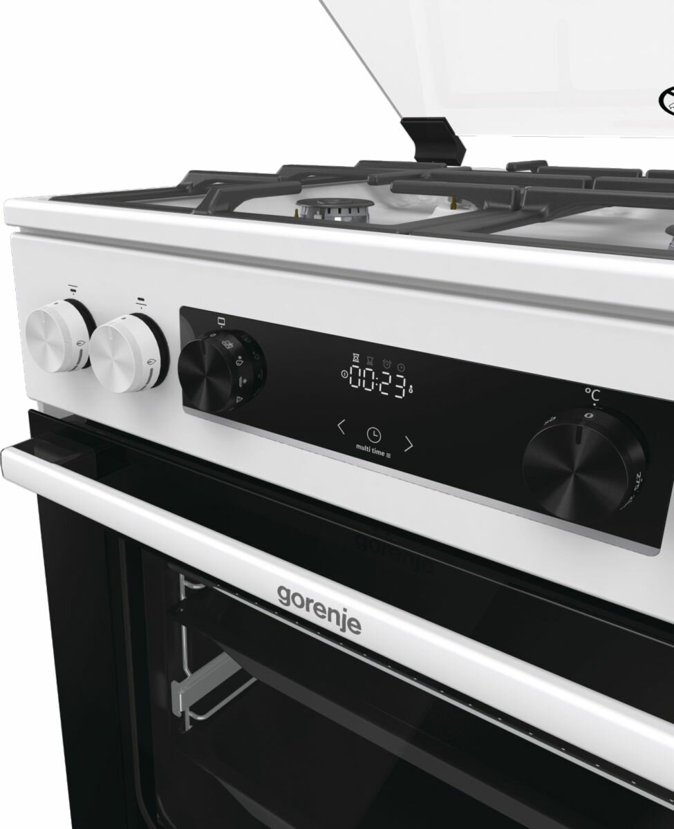 Газовая плита Gorenje GKS6C70WF, электрическая духовка, стеклянная крышка, чугун, белый