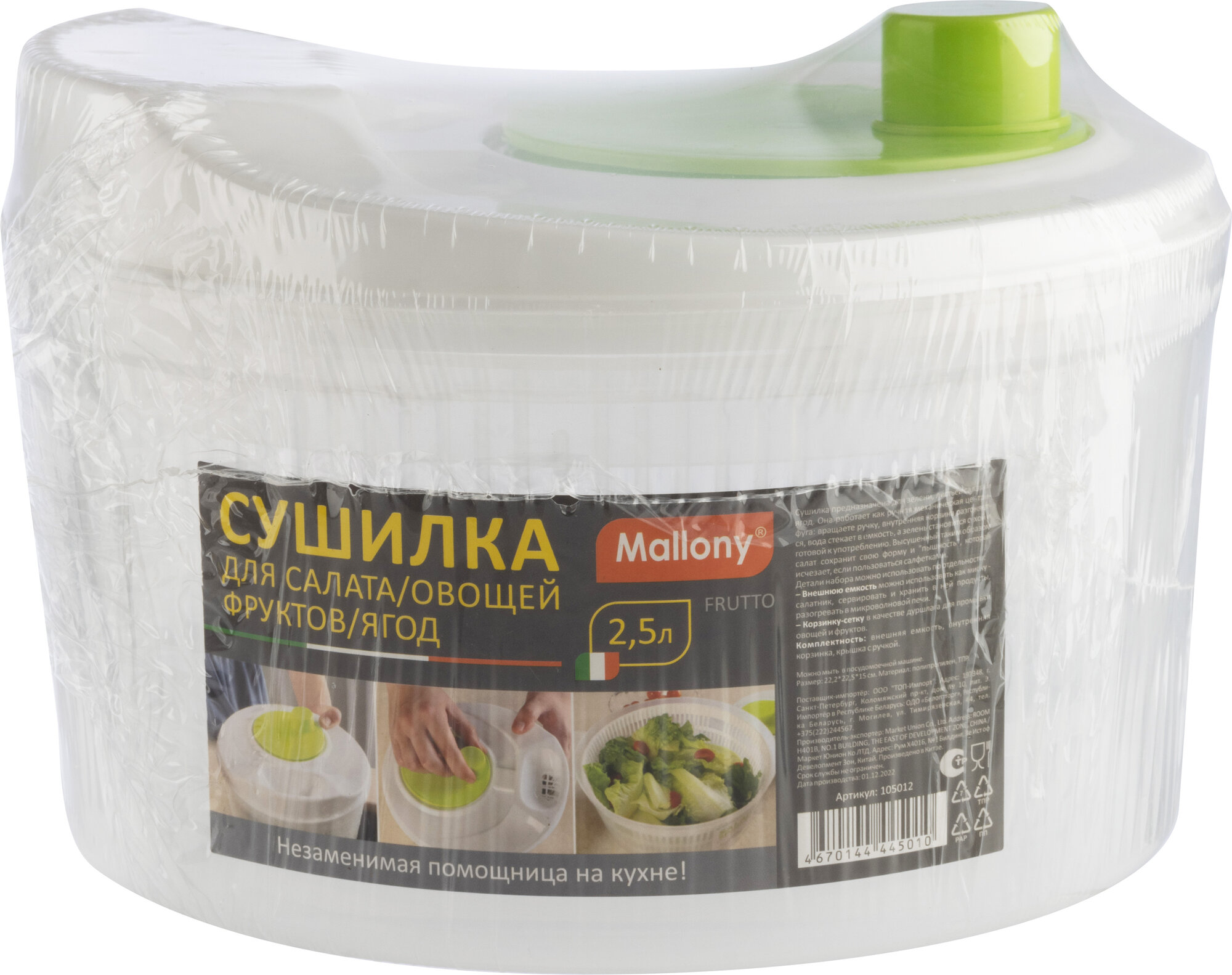 Сушилка для зелени mallony frutto 22,2х15,5см 2,5л пластик, тпр