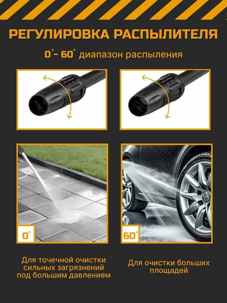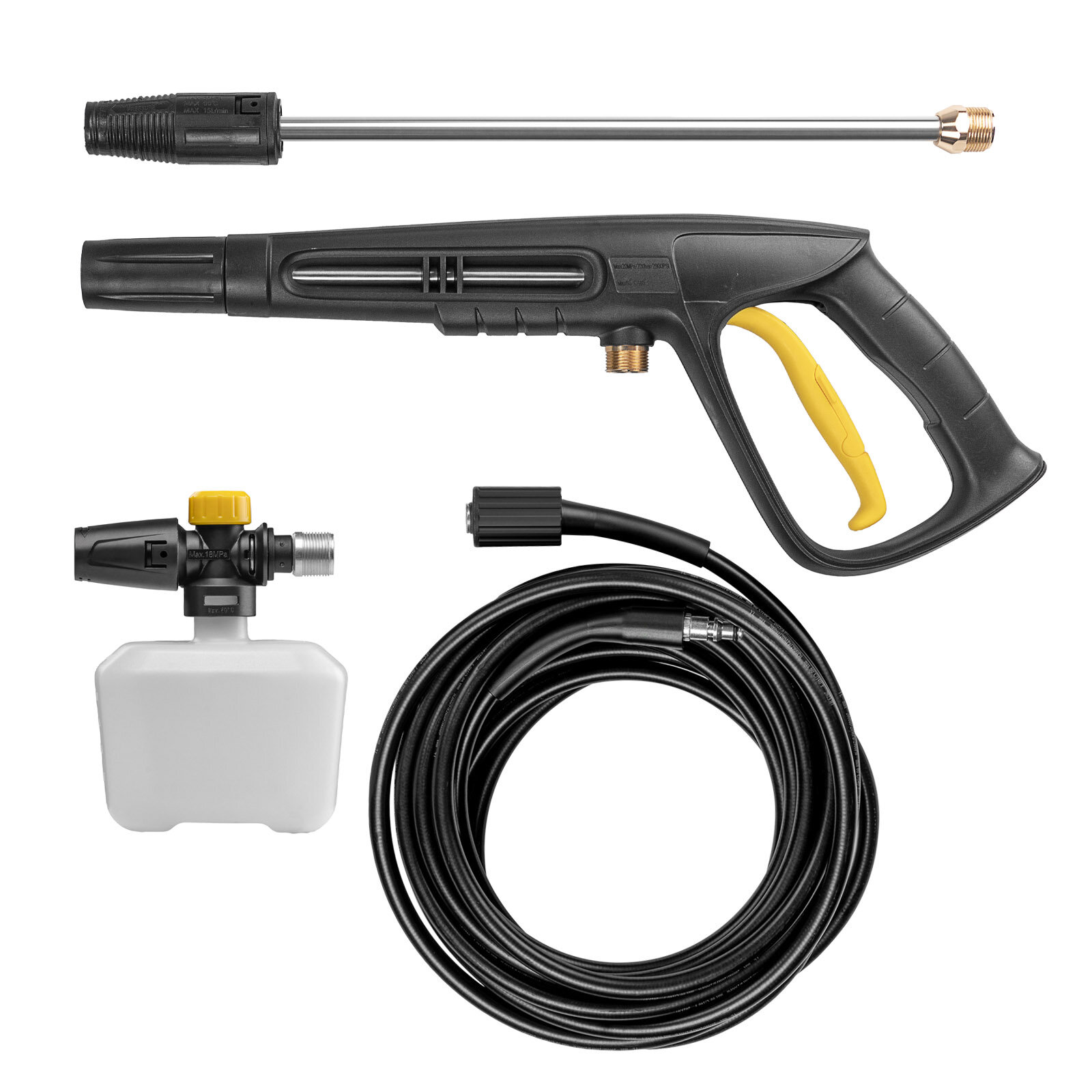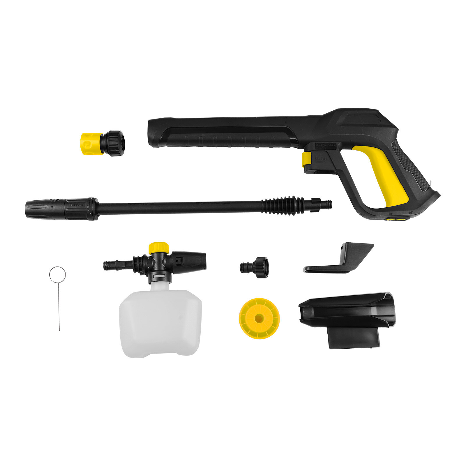 | Подробная комплектация | пистолет высокого давления, распылитель, пеногенератор, переходник, быстросъем для шланга 3/4, гибкий шланг высокого давления, колеса, игла для очистки сопла |