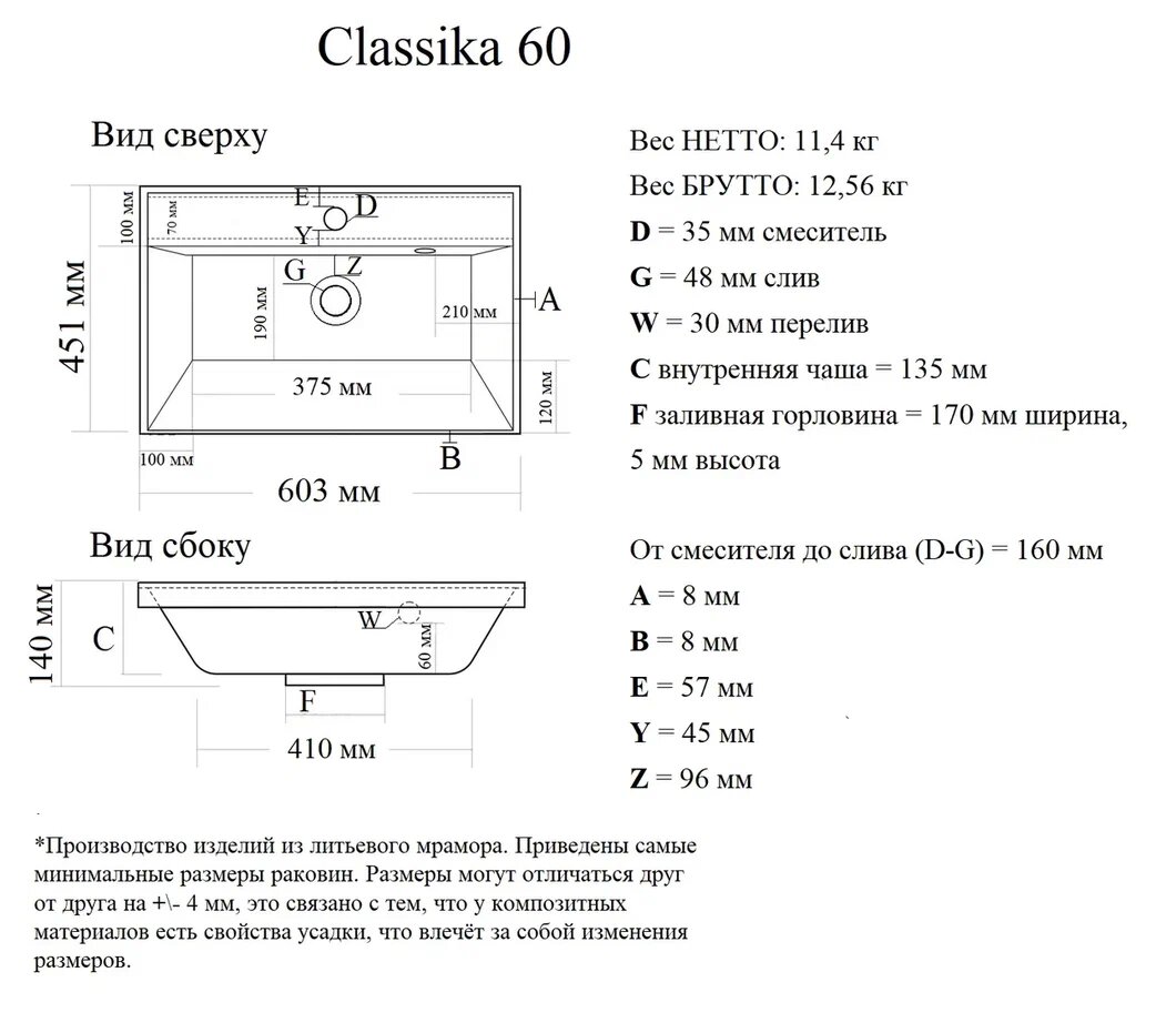 Раковина Madera Classica 60 4627173210164 белый интересное: