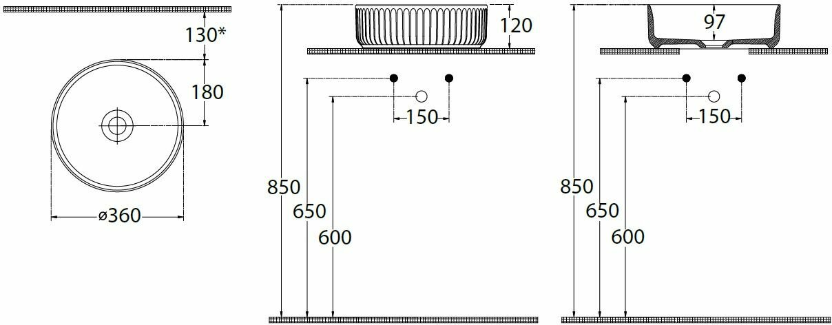 | Число размеченных отверстий под смеситель | отсутствуют |
