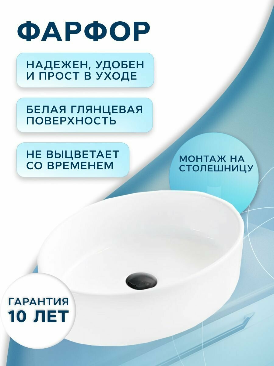 Раковина со смесителем и выпуском (Умывальник на столешницу BAU Nimb овальный 50х36, белый, смеситель для раковины высокий Hotel Black, черный, выпуск клик клак, черный) интересное: