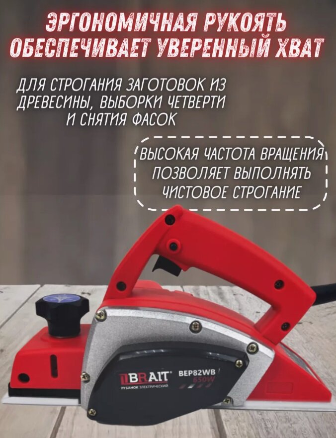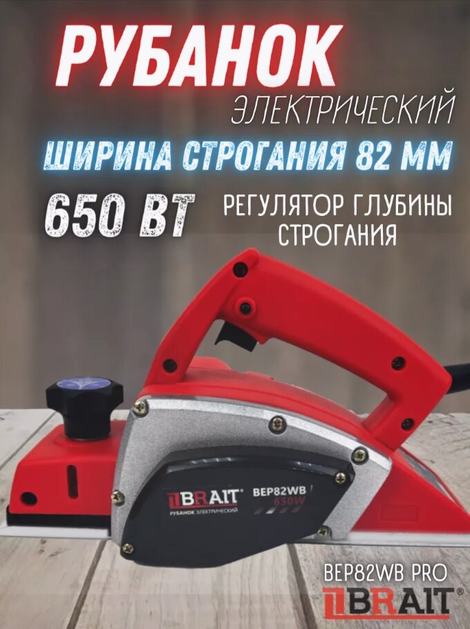 Рубанок BRAIT PRO BEP82WB, сетевой, 650Вт, 82мм, регулировка глубины интересное: