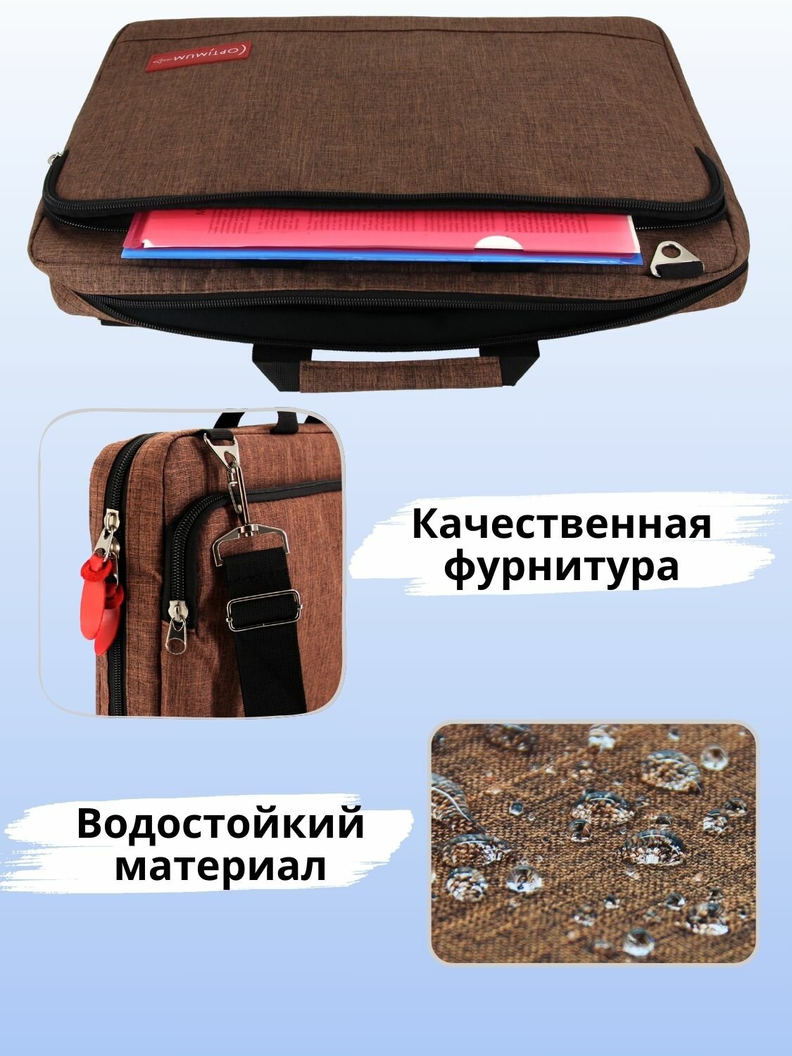 Сумка для ноутбука 17.3 17 18 дюймов с ремнем мужская женская, коричневая