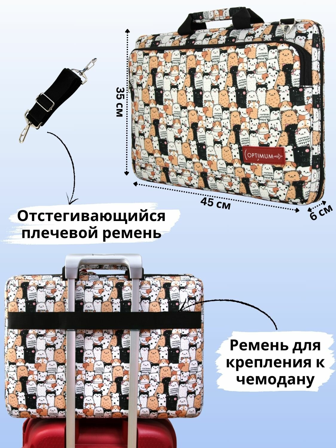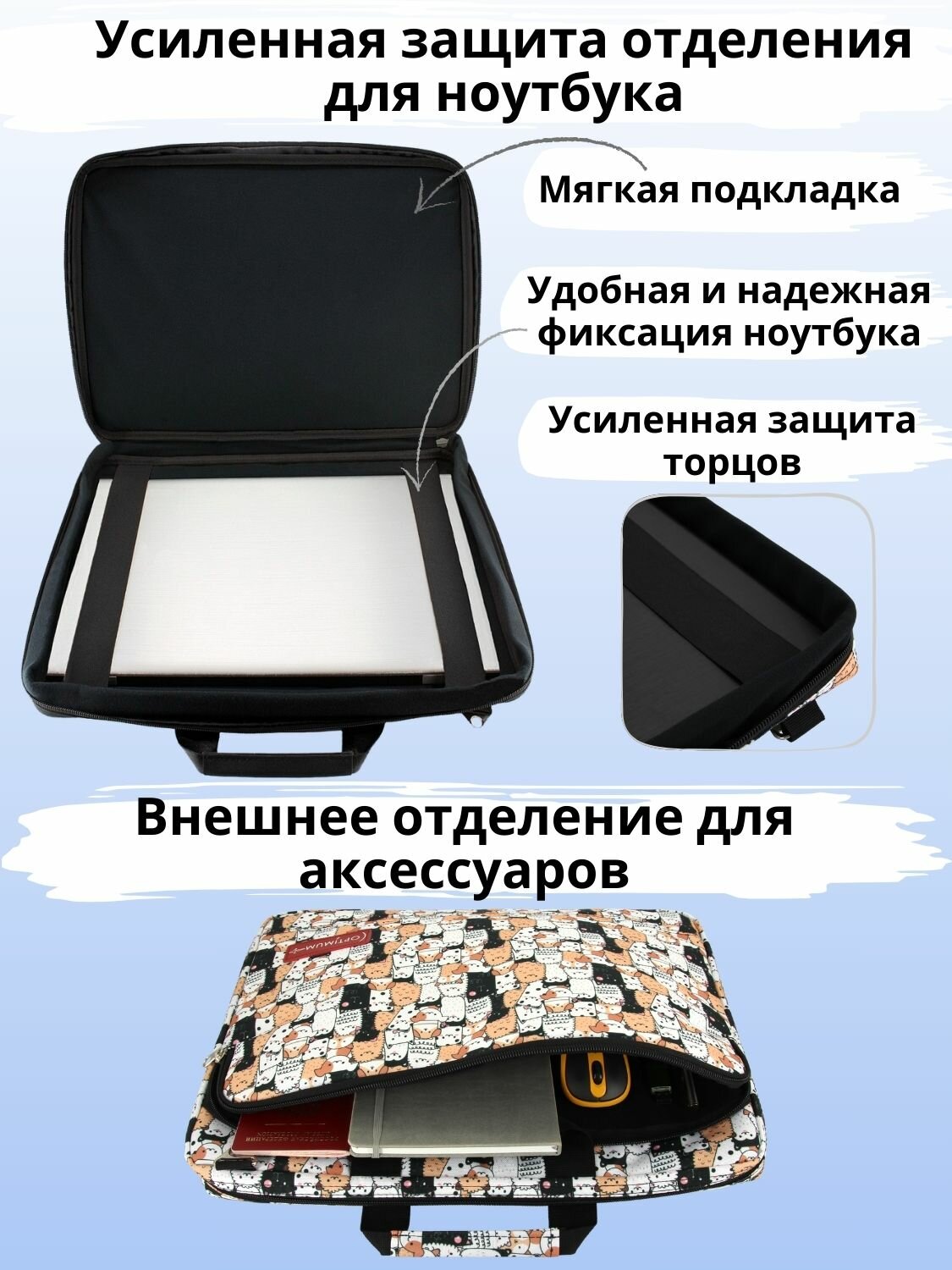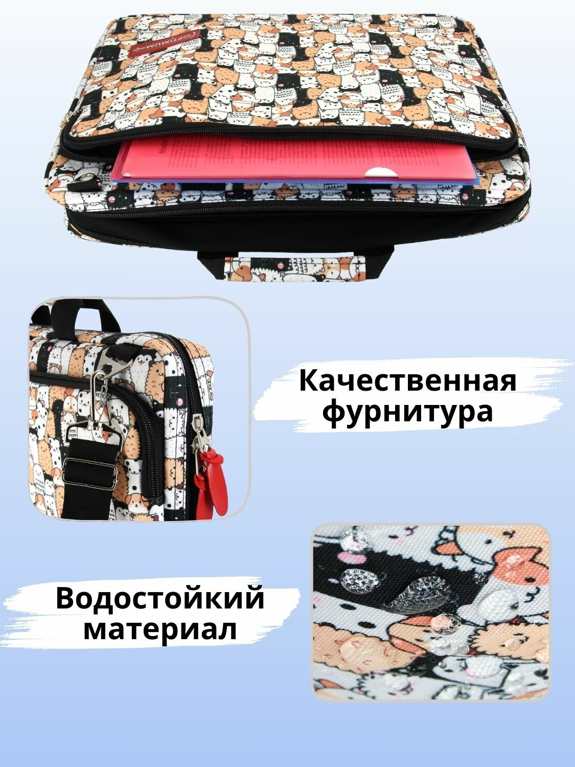 Сумка для ноутбука 17.3 17 18 дюймов с ремнем мужская женская, котики