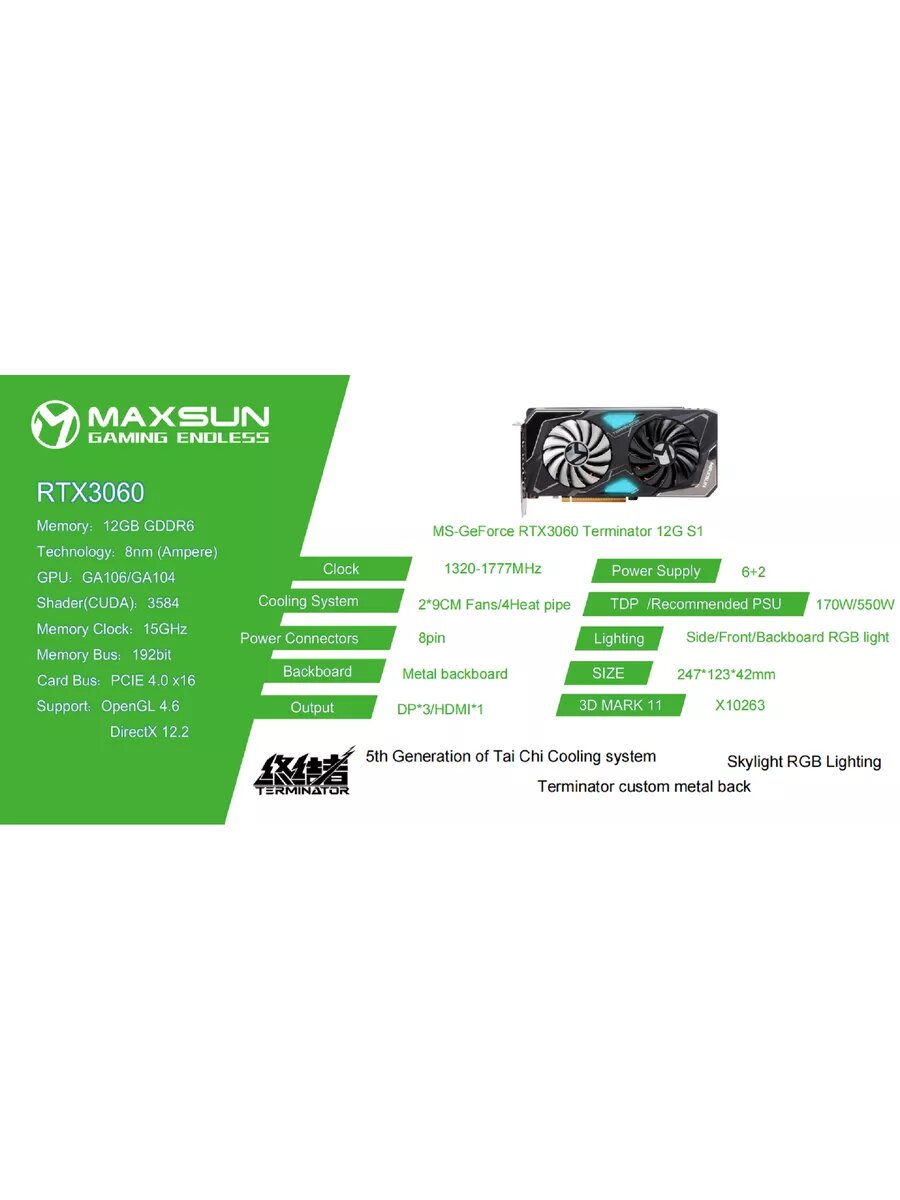 Видеокарта Maxsun MS-Geforce RTX3060 (Terminator 12G S1) GDDR6
