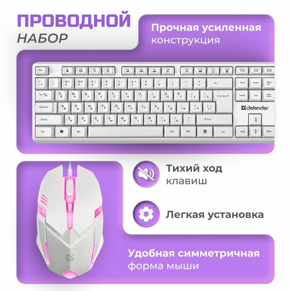 Клавиатура и мышь Defender LINE MOTION C-977 RU проводные белый (45977) интересное: