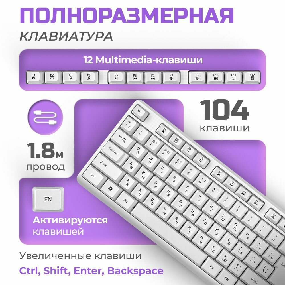 Проводной набор Defender Motion C-977 RU, белый, полноразмерный,1.8м