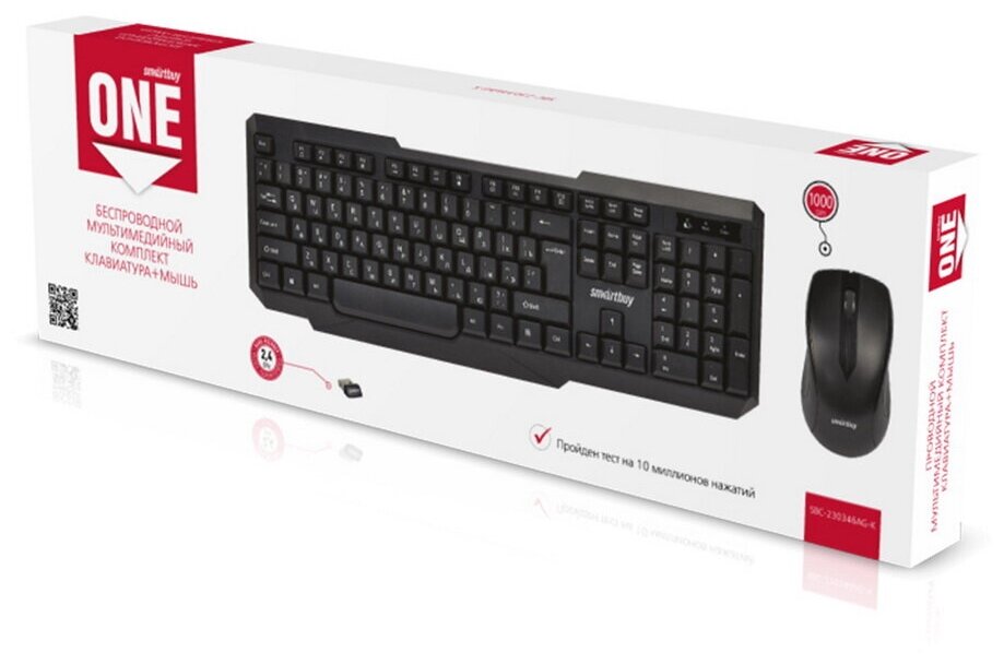 Комплект клавиатура и мышь беспроводные SmartBuy ONE 230346AG-K, черный интересное: