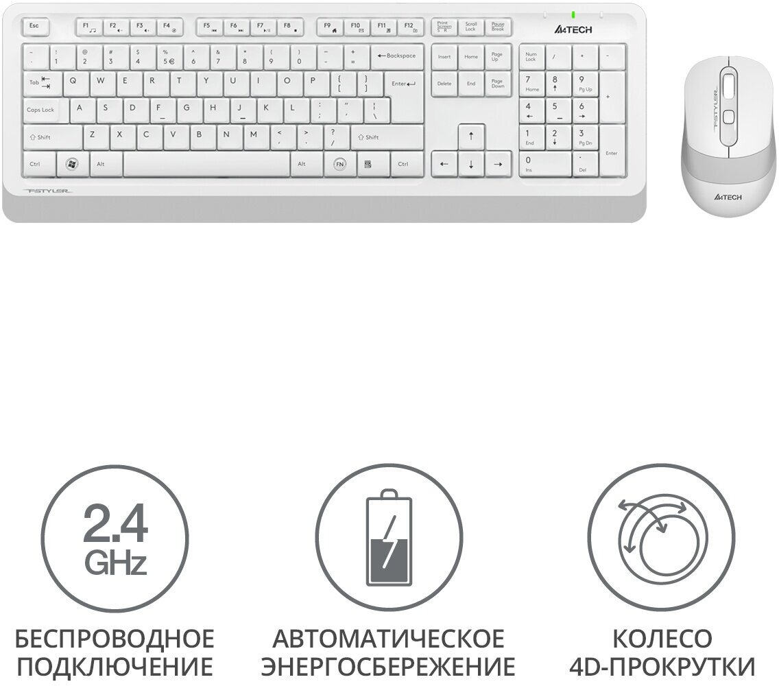 Клавиатура и мышь беспроводные A4TECH Fstyler FG1010S (белый/серый)