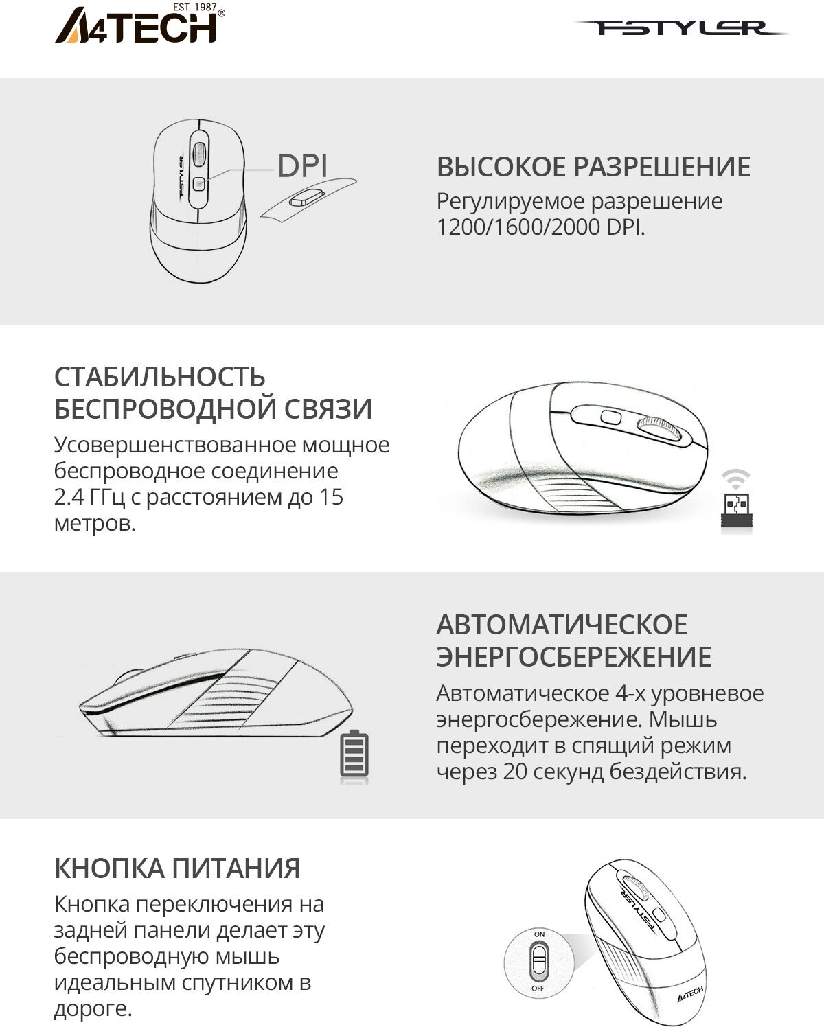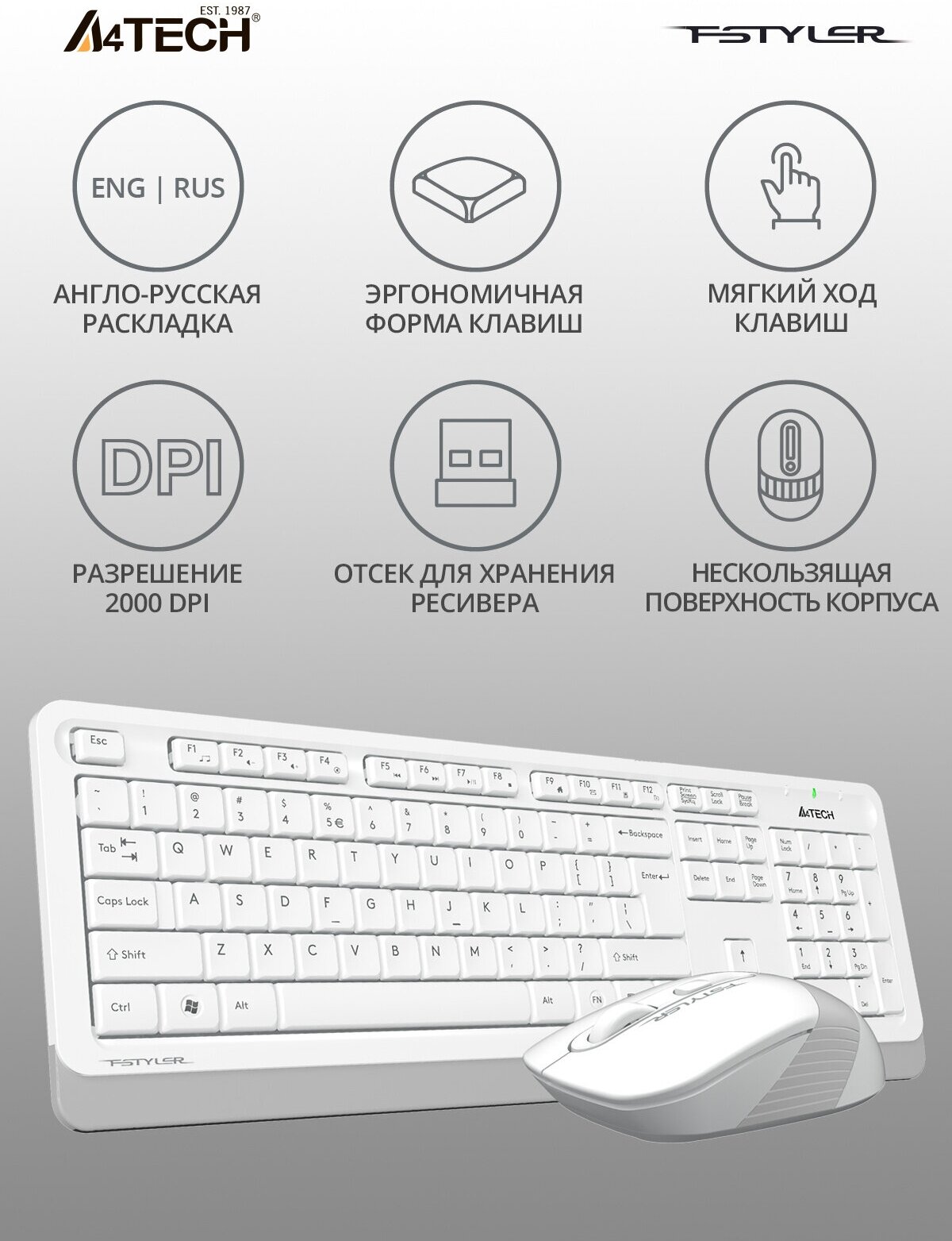 Клавиатура и мышь A4Tech "Fstyler", FG1010, серо-белые, USB, беспроводные (1147575)