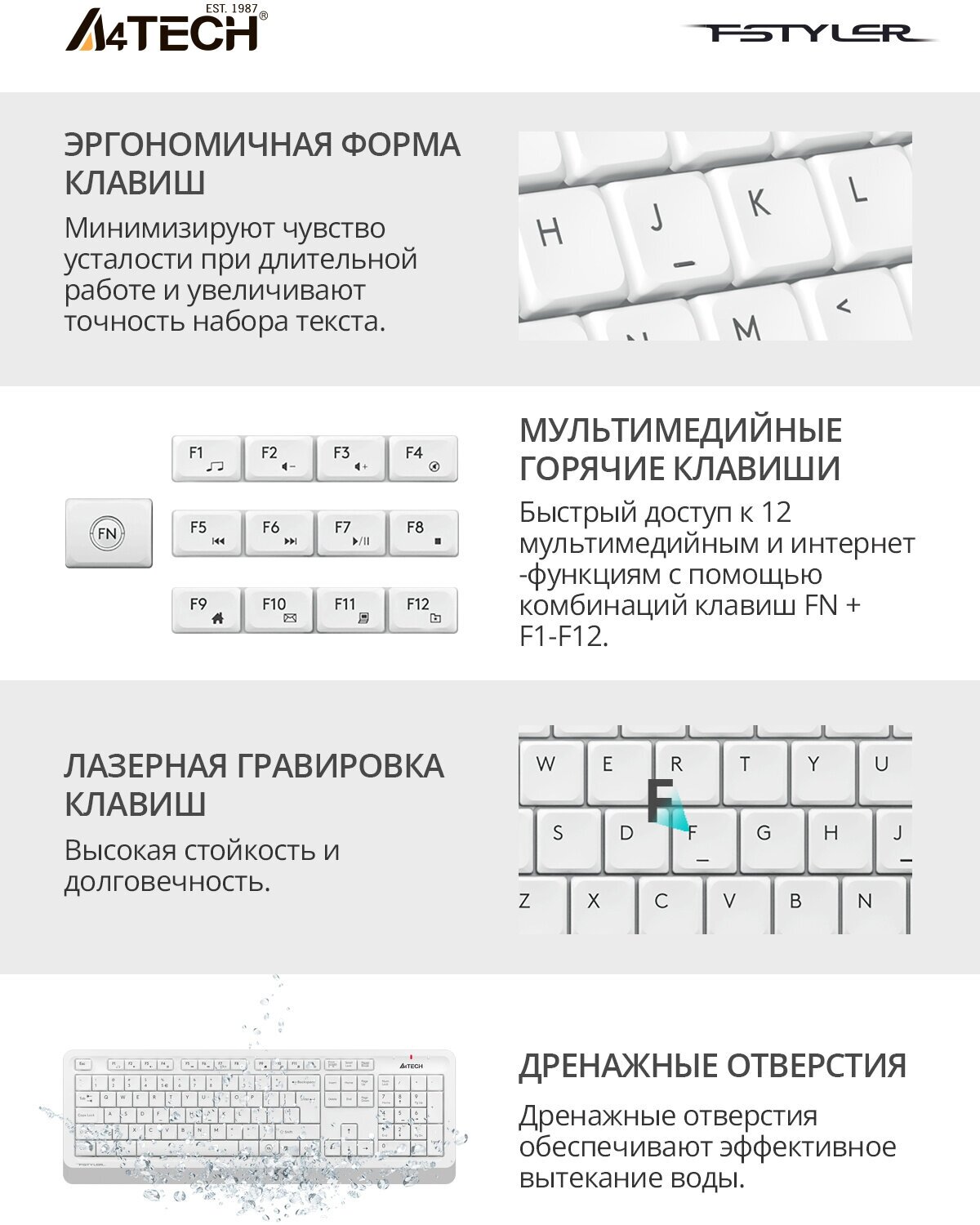 Комплект клавиатура+мышь A4Tech FStyler FG1010 White/Grey интересное: