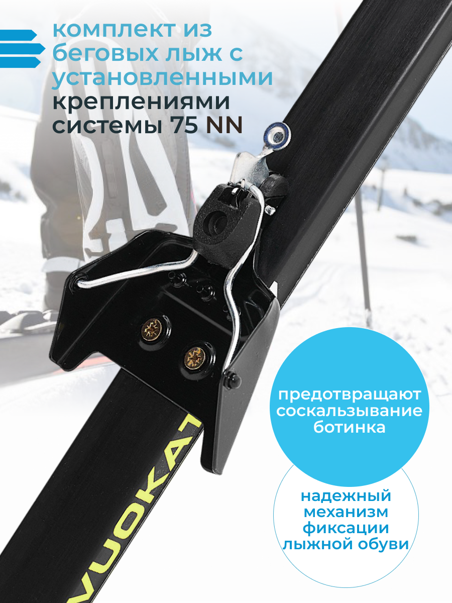 СохранитьБеговые лыжи комплект VUOKATTI 195 см с креплением 75 мм Wax Black/Yellow интересное: