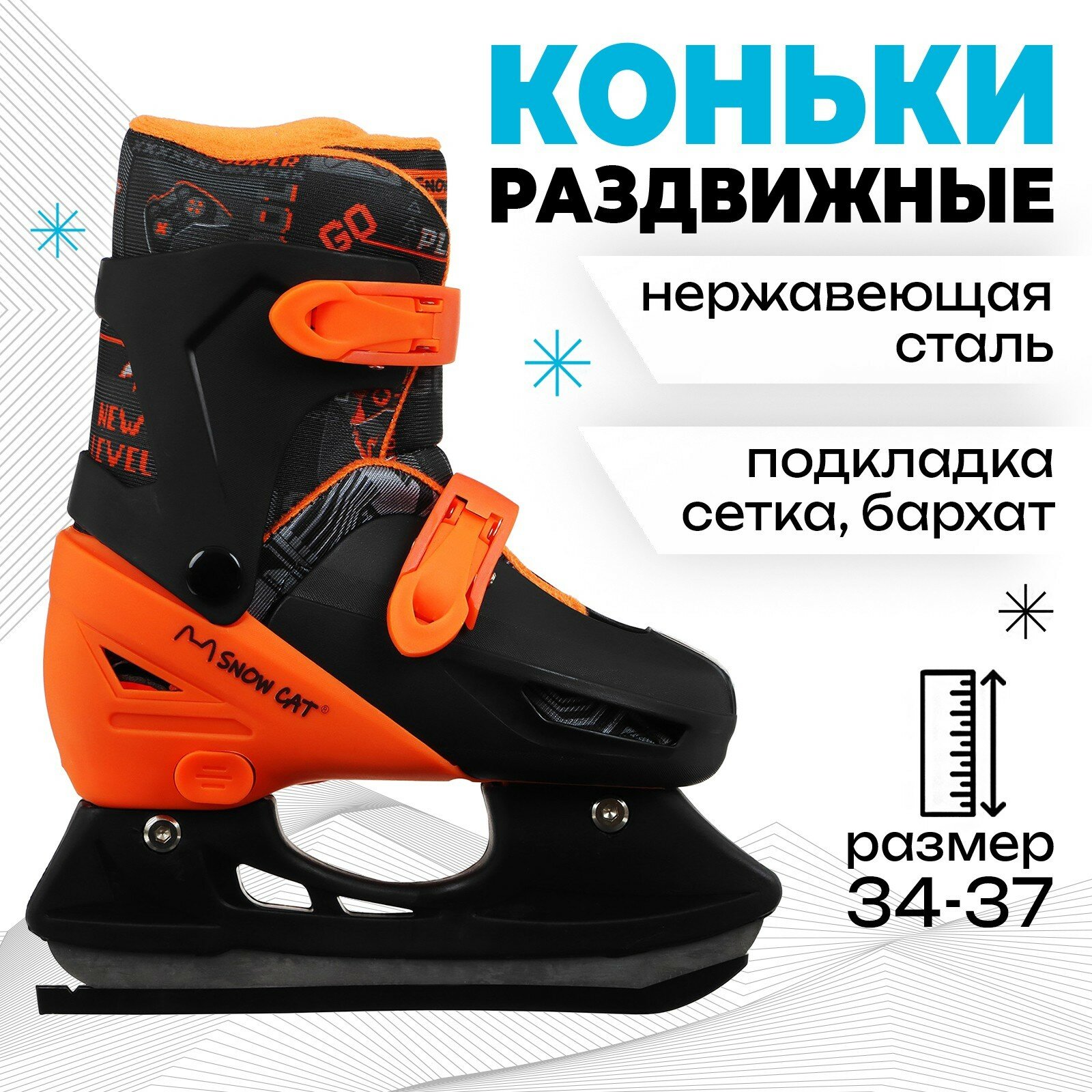 Snow Cat Коньки детские раздвижные, р. 34-37