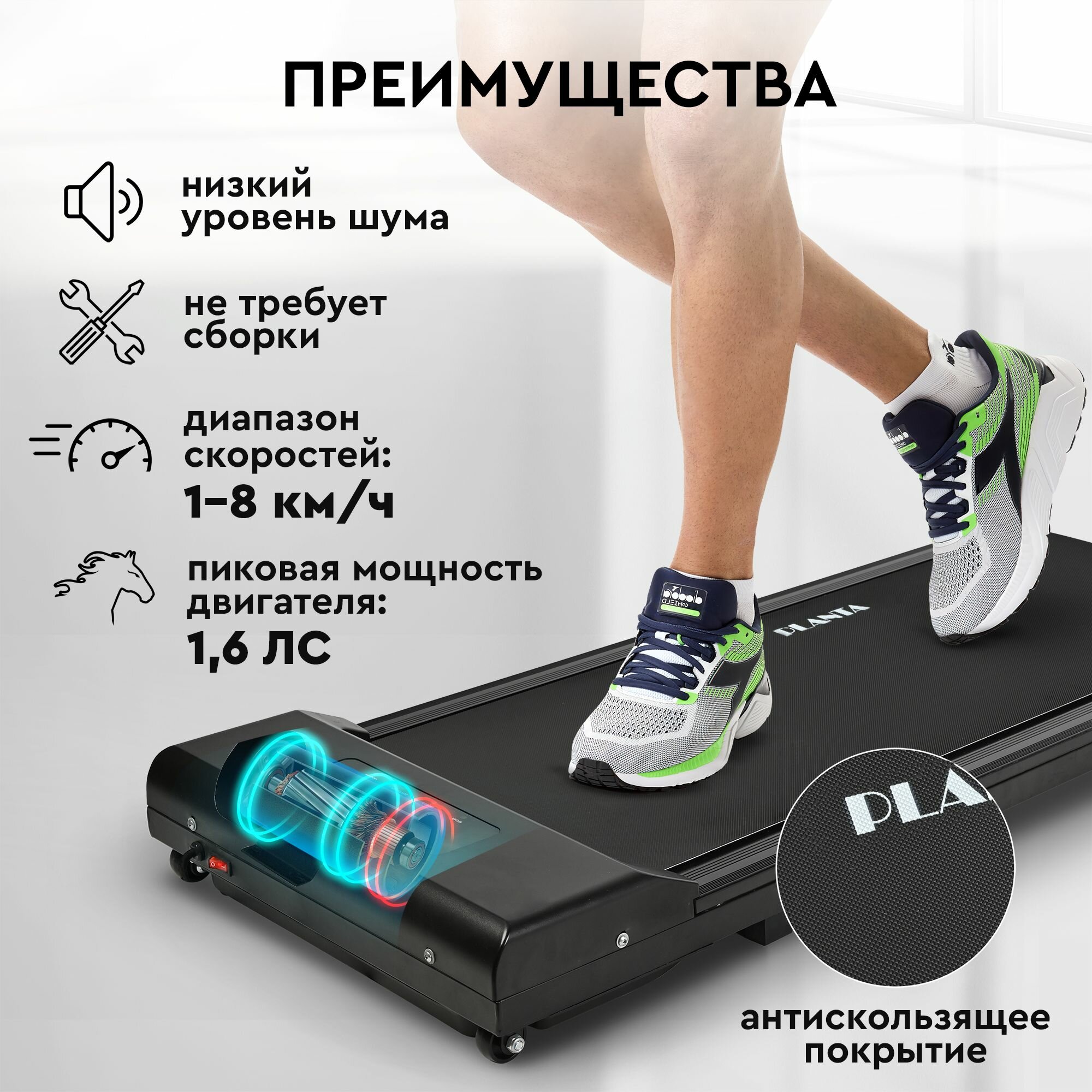 Ниже Вы можете прочитать отзывы на Беговая дорожка ультратонкая и компактная PLANTA TM-150, LED-дисплей, пульт ДУ, ознакомится с подробными характеристиками, посмотреть интересные обзоры и фотографии на Беговая дорожка ультратонкая и компактная PLANTA TM-150, LED-дисплей, пульт ДУ.