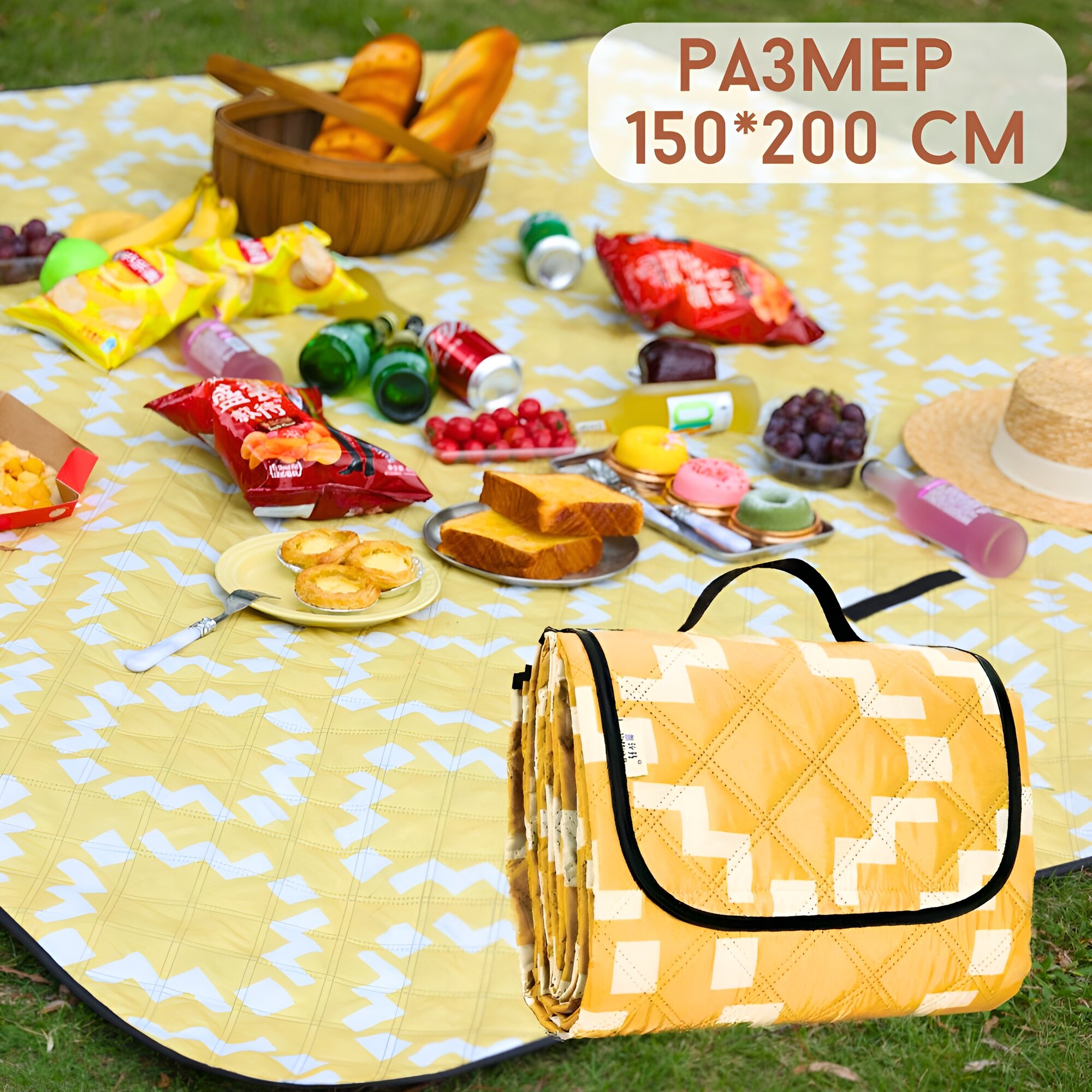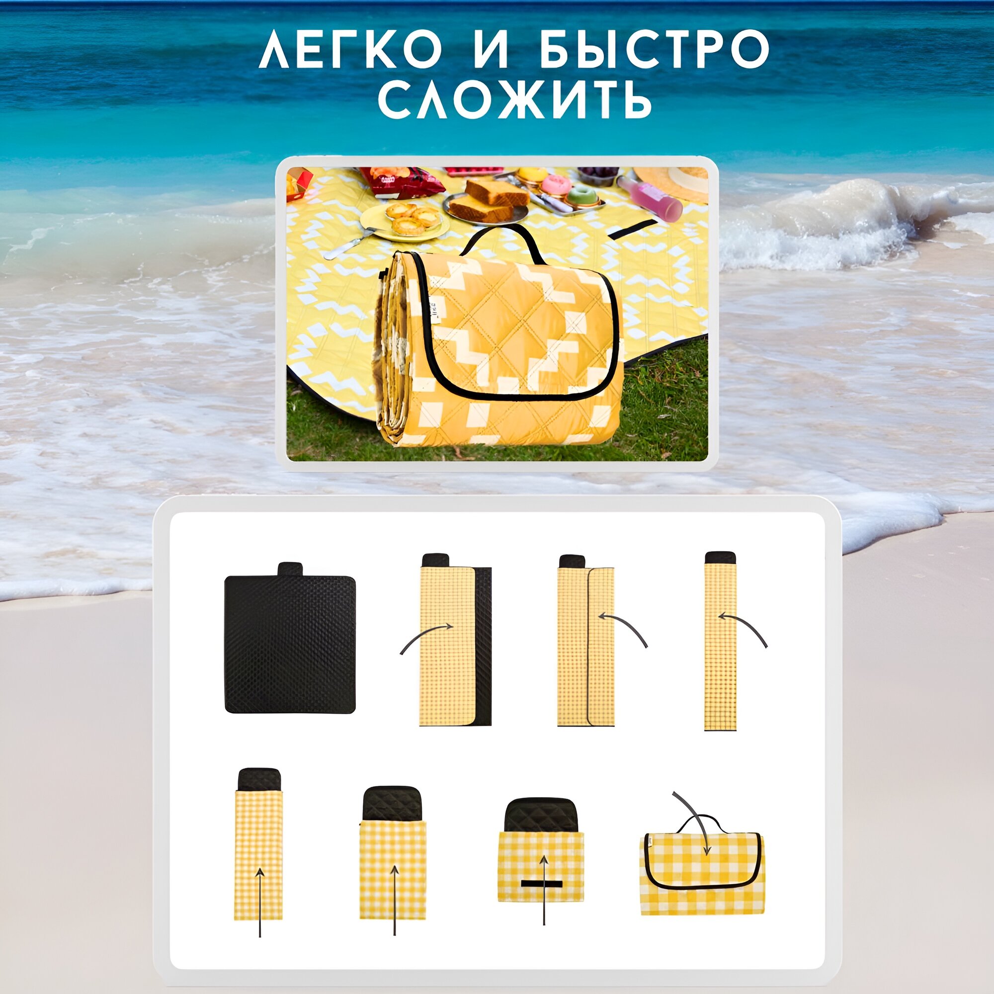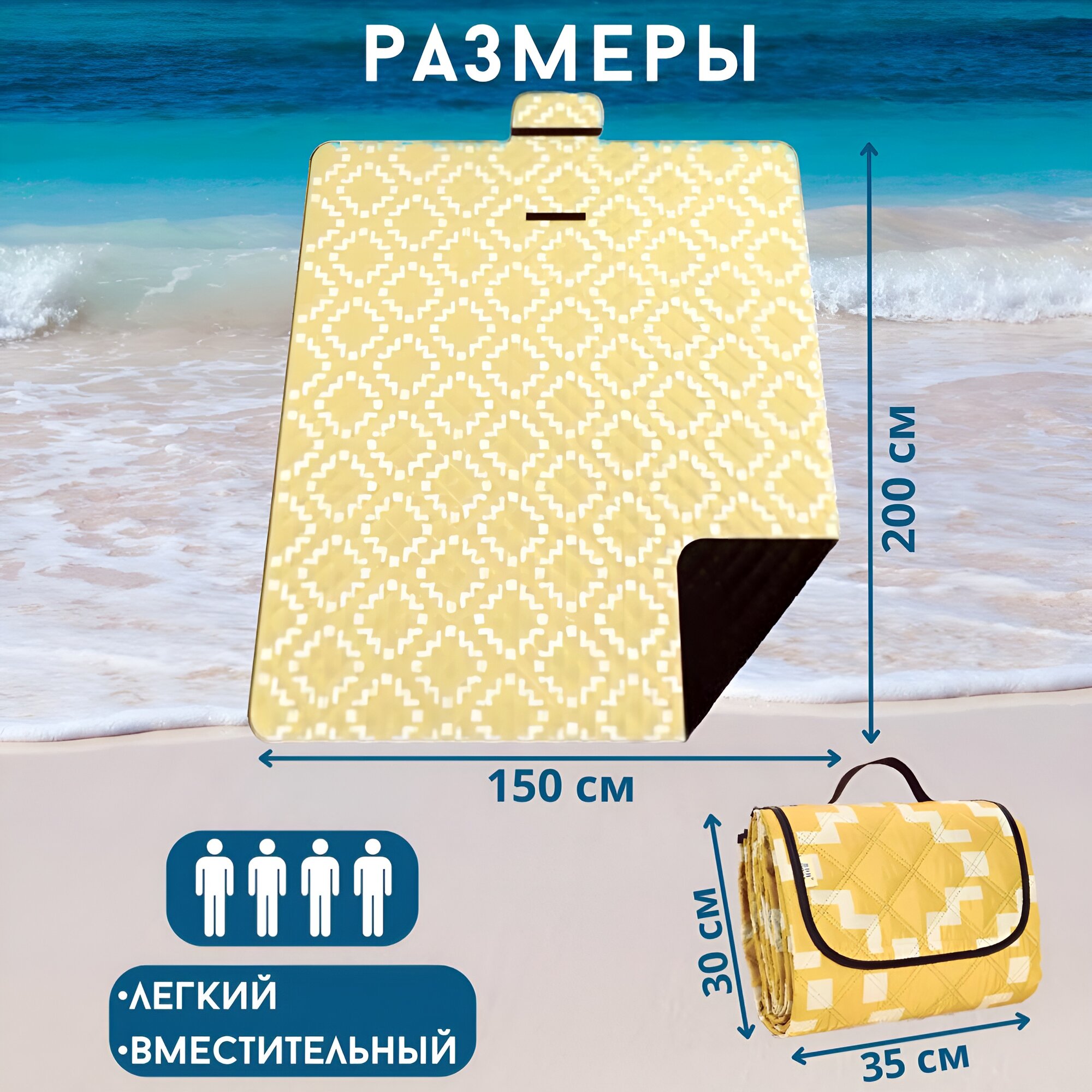 Коврик пляжный 200*150 см., коврик сумка, для пикника, для туризма