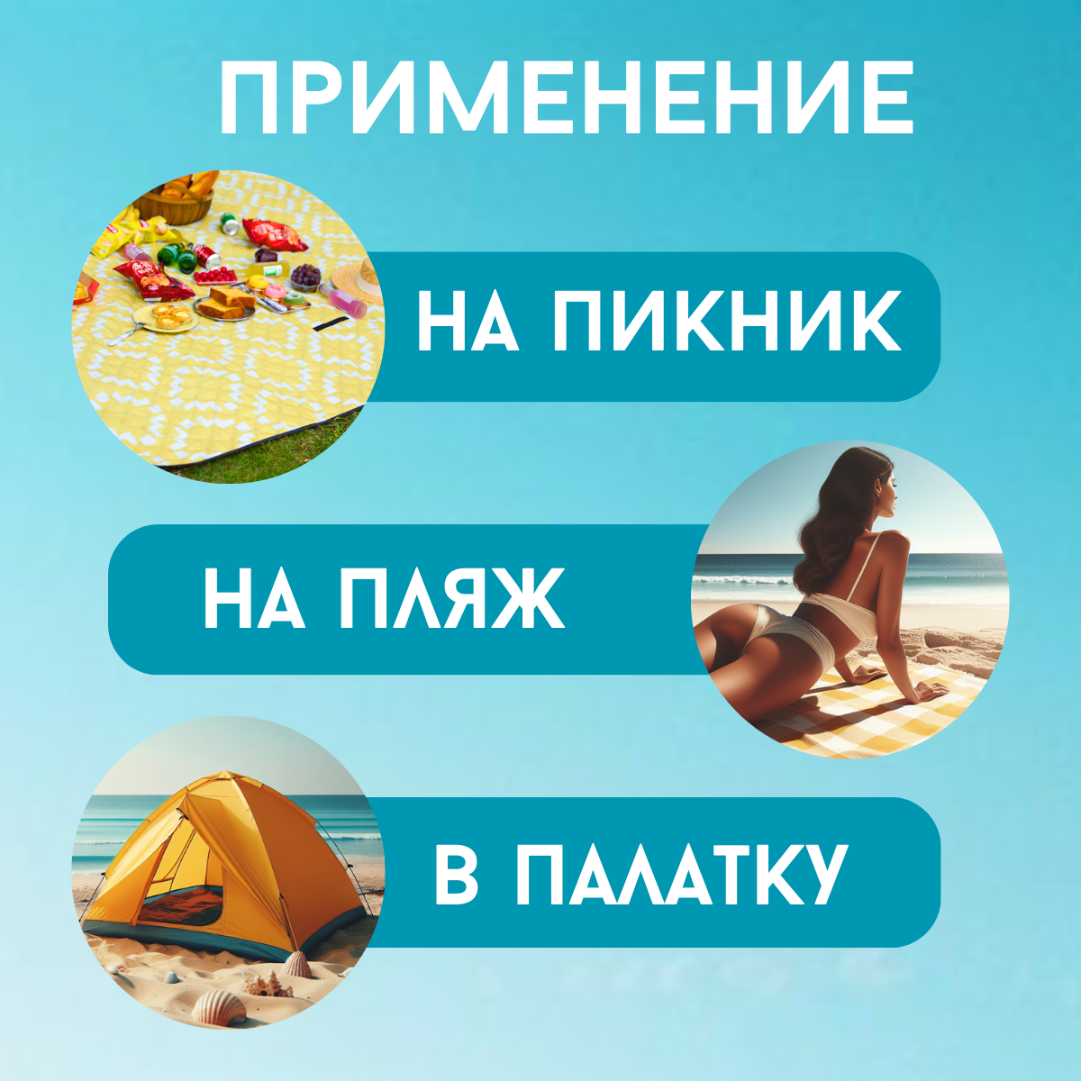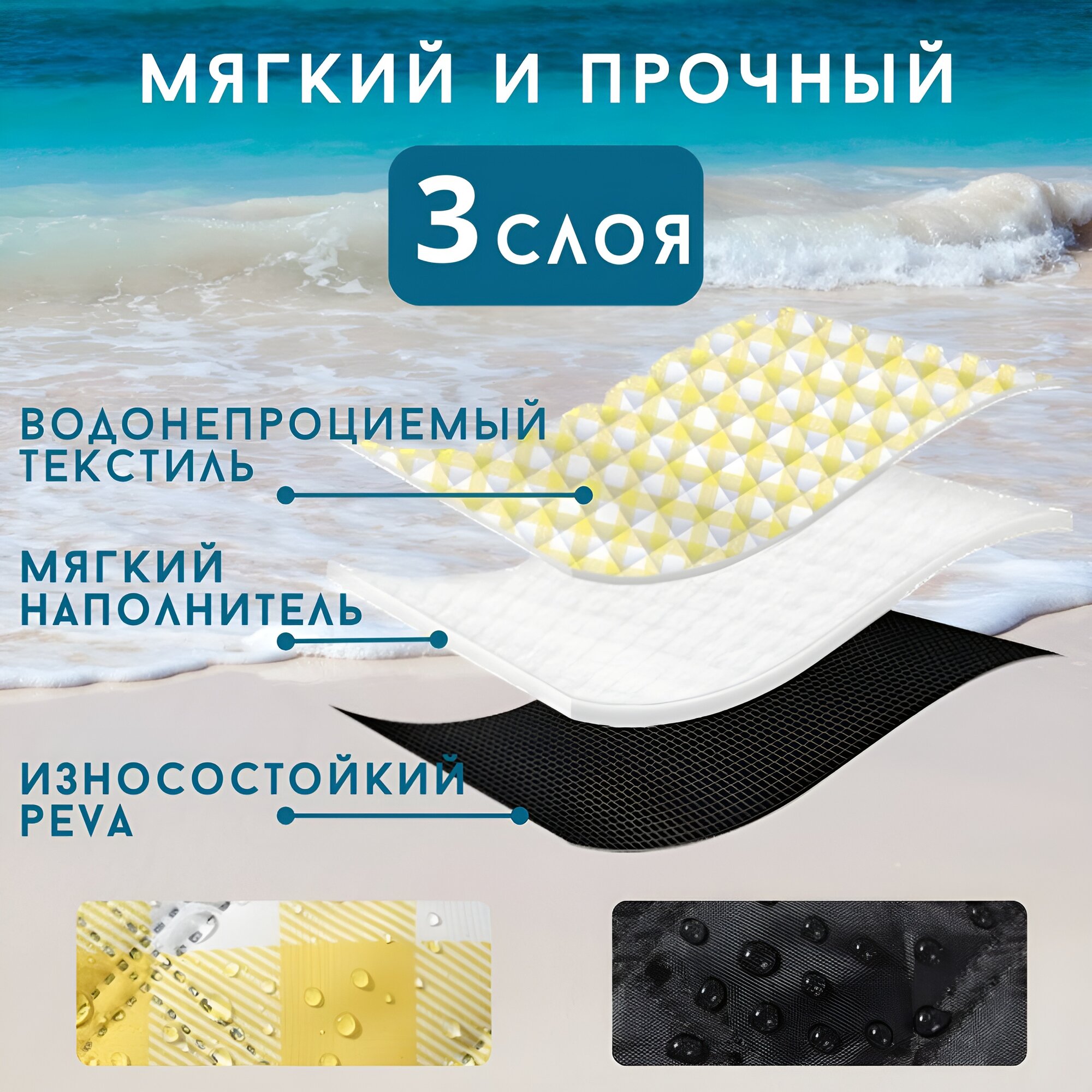 Коврик пляжный 200*150 см., коврик сумка, для туризма интересное: