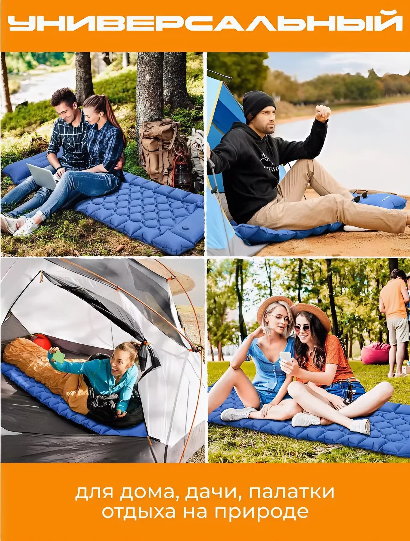 Коврик туристический самонадувающийся с подушкой и встроенным насосом, синий