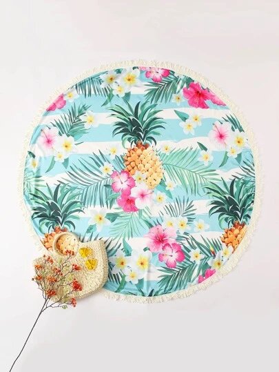 Купить Пляжное покрывало круглый пляжный коврик с бахромой 155 см