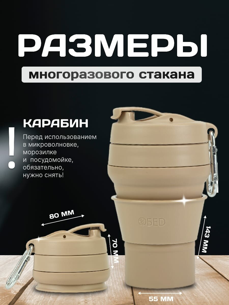 СохранитьСтакан для кофе с крышкой складной многоразовый с мешочком для хранения, 350мл, ОБЕD, коричневый интересное: