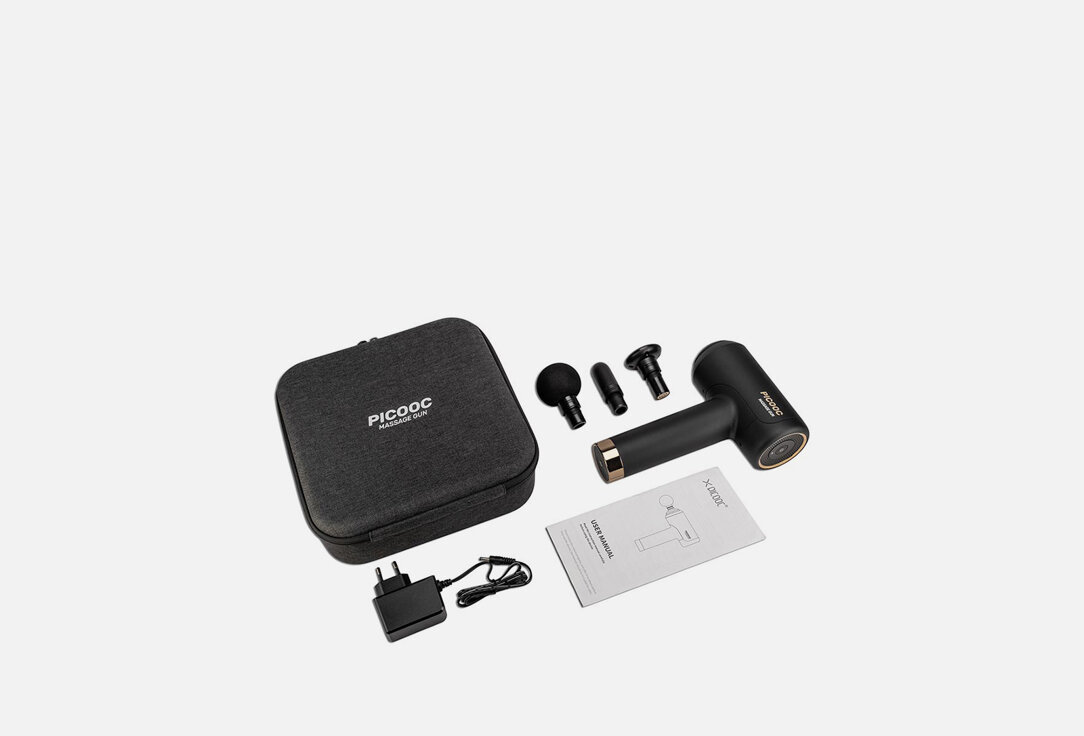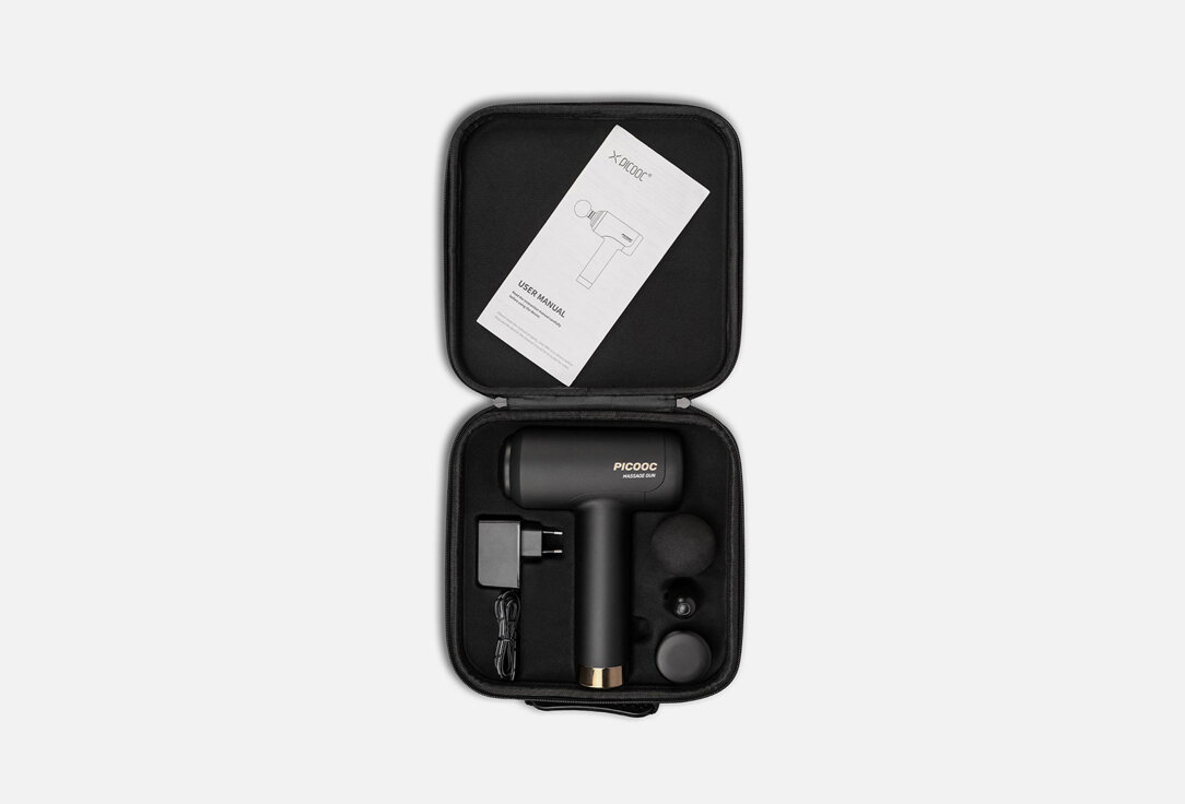 | Подробная комплектация | Перкуссионный массажер Picooc H1 Heat, 3 сменные насадки: круглая, тепловая и пулевидная, Адаптер питания, Чехол-кейс, Документация |