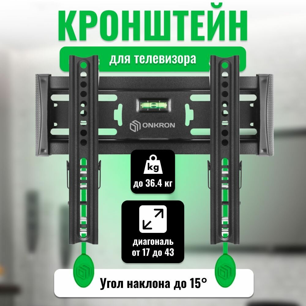 Кронштейн ONKRON/ 17-43'' макс 200*200 мм, наклон 15º, от стены 35-105 мм, макс вес 18.2 кг, встр уровень