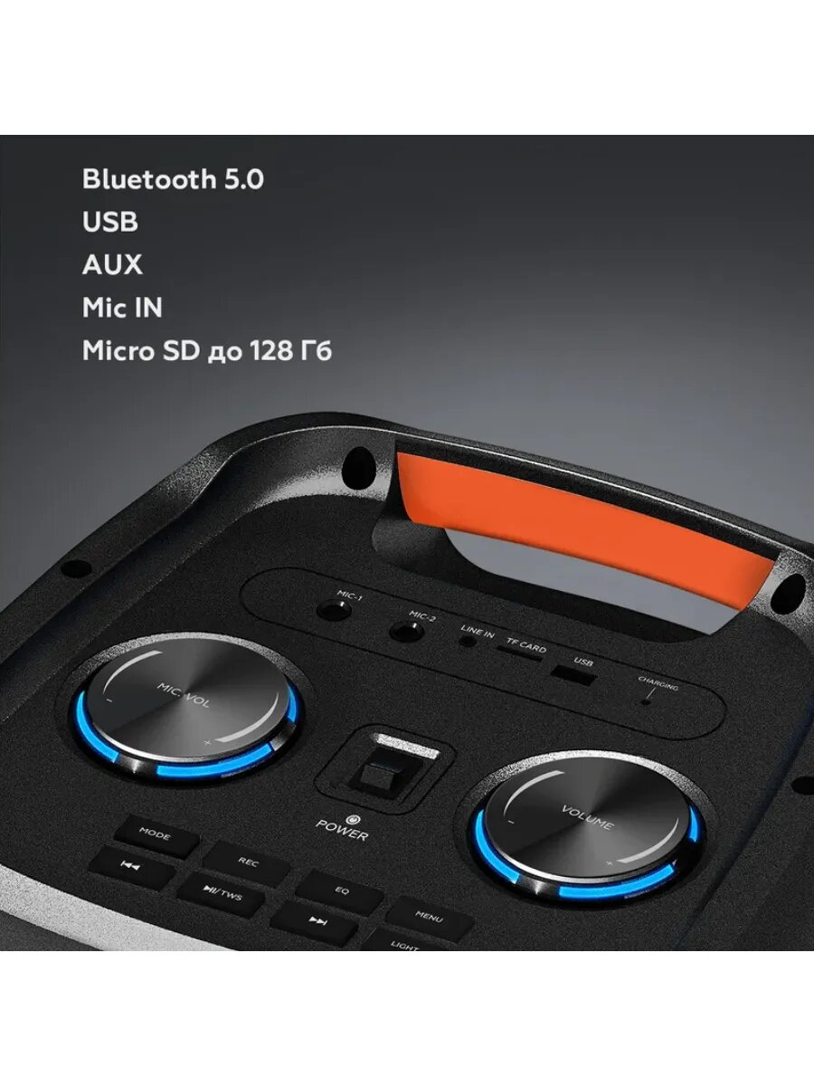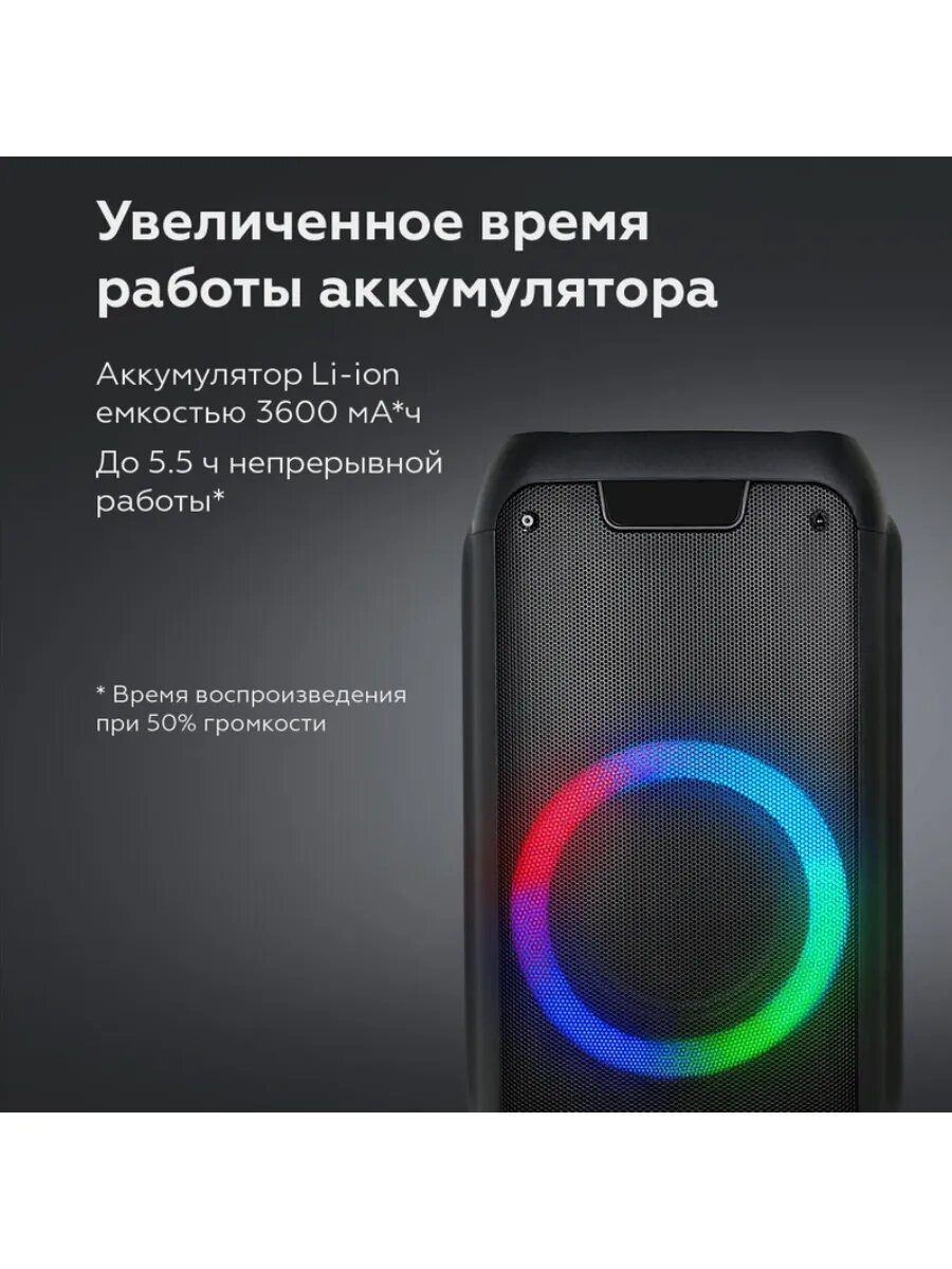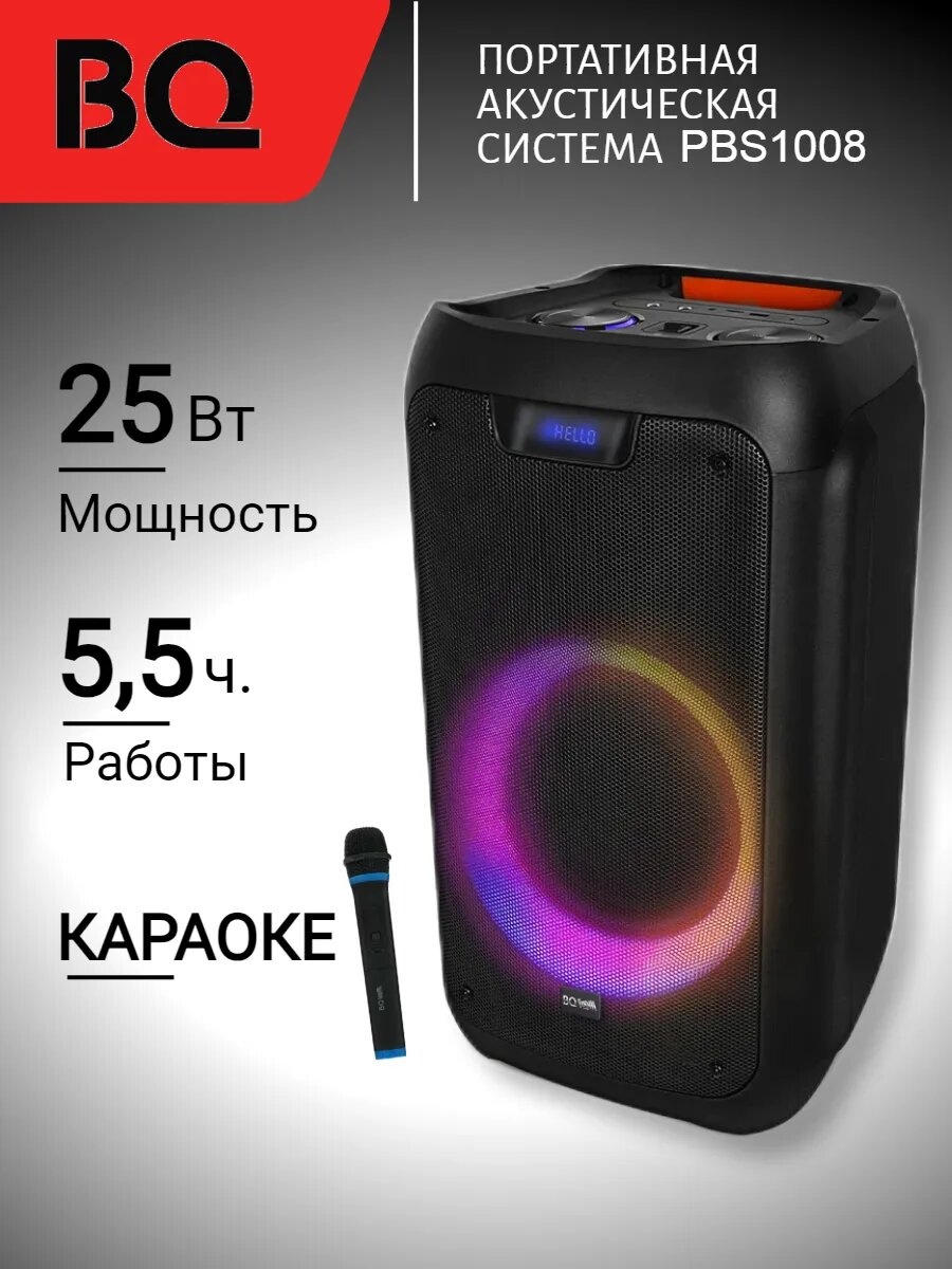 Портативная колонка BQ PBS1008, черный, 25 Вт, Bluetooth, AUX, 3600 мА*ч, время работы - до 5.5 ч