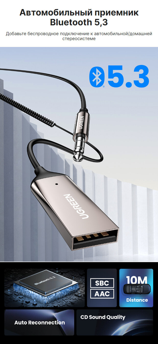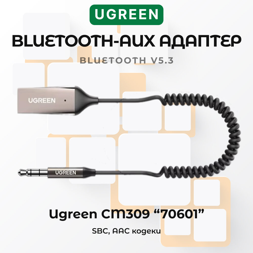 Aвтомобильный Bluetooth AUX адаптер, ресивер 3,5mm AUX-USB Ugreen CM309 (70601) Bluetooth v5.3, блютуз адаптер интересное: