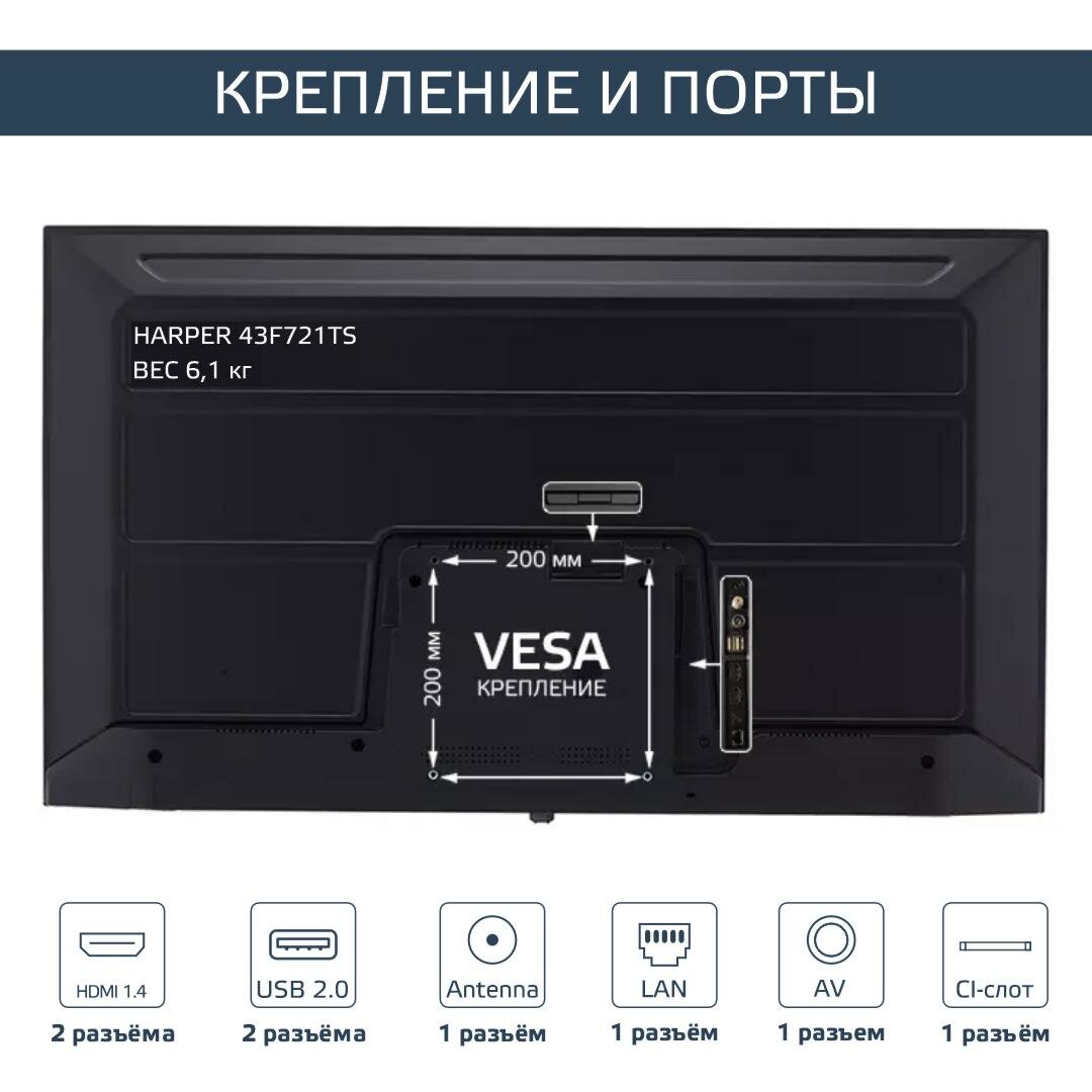 Телевизор 43 дюйма HARPER 43F721TS, SMART (Android TV), черный интересное: