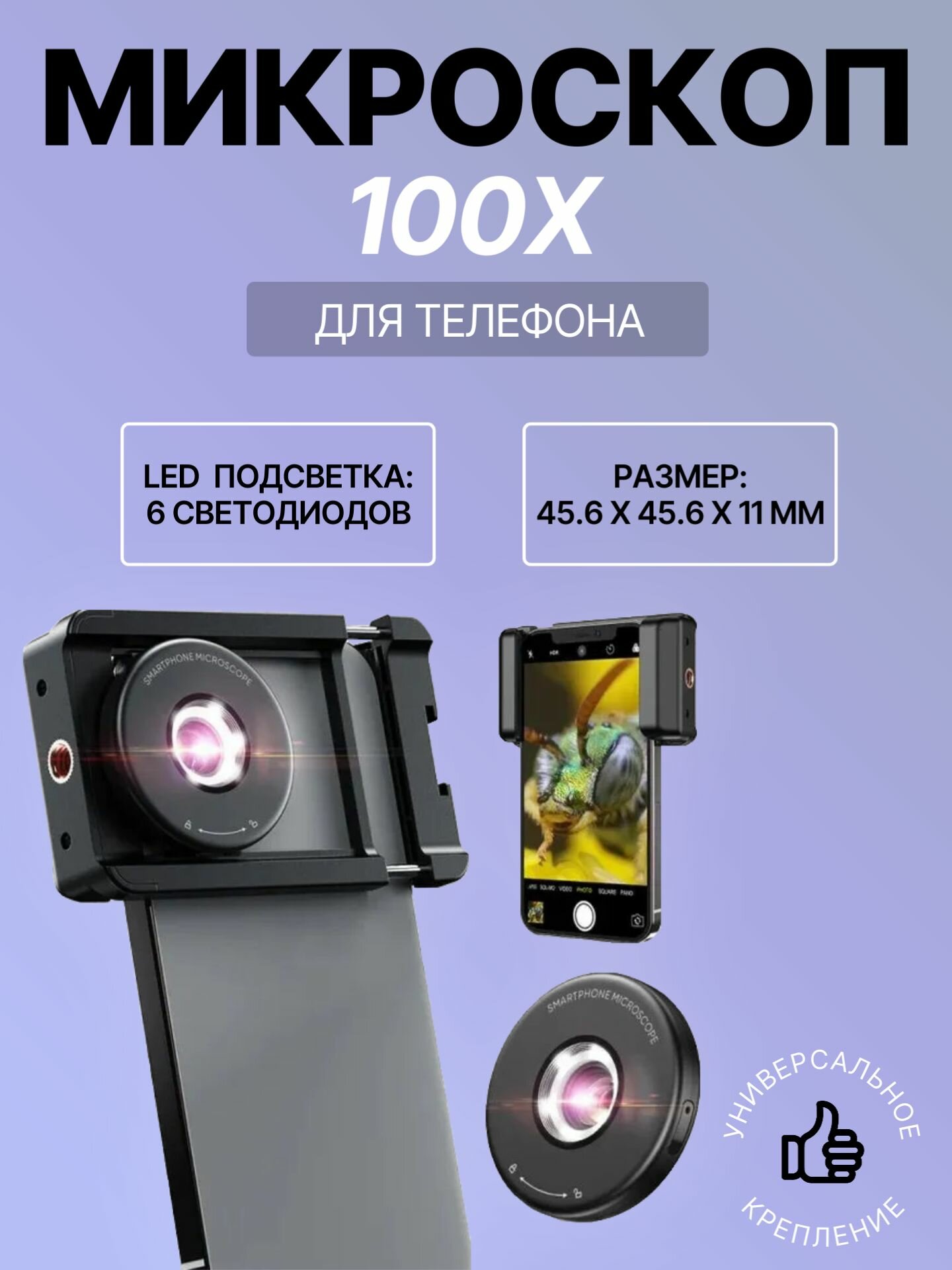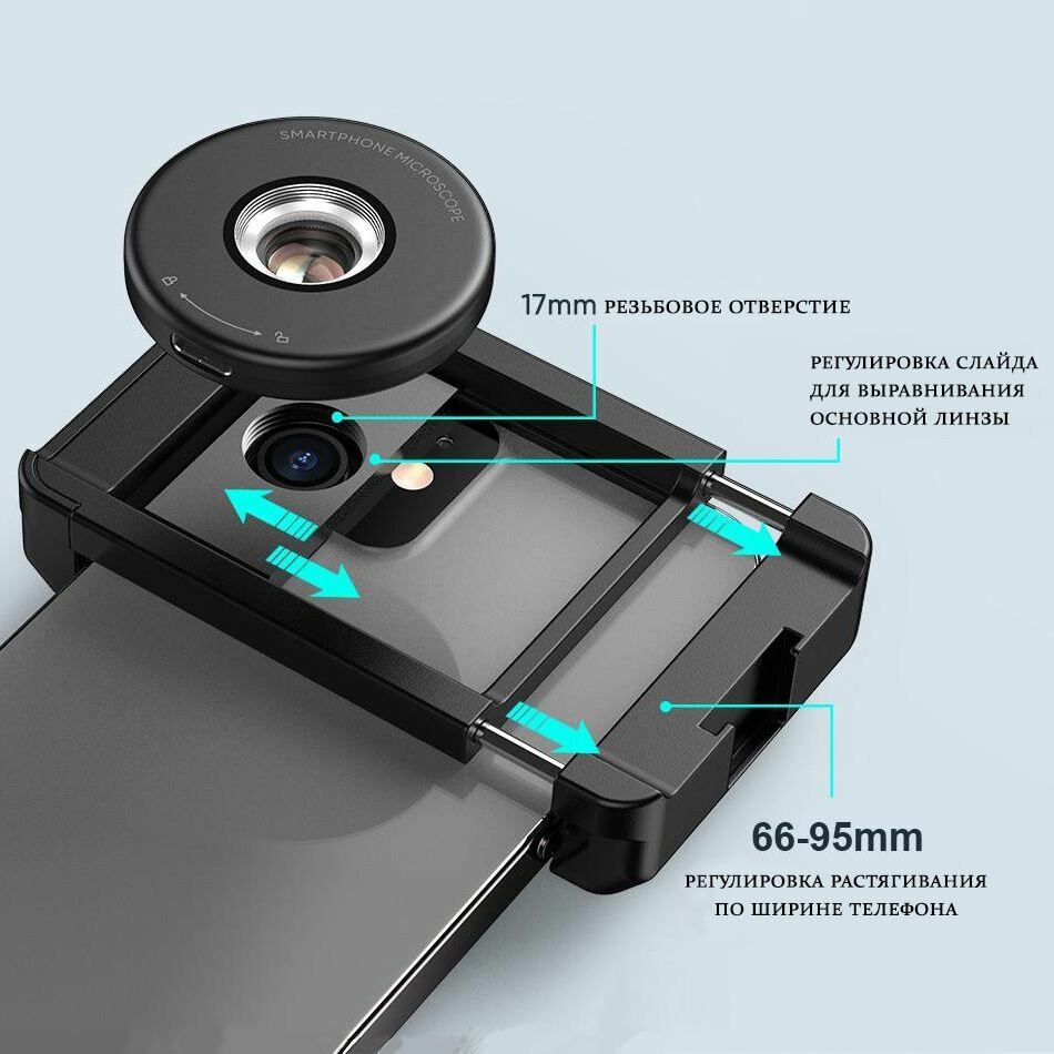 Микроскоп для телефона 100x с LED подсветкой и универсальным креплением интересное: