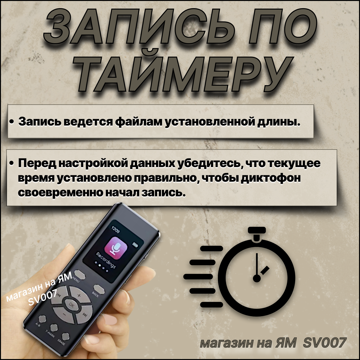 | Запись | изменение чувствительности микрофона, по таймеру, с разным качеством |