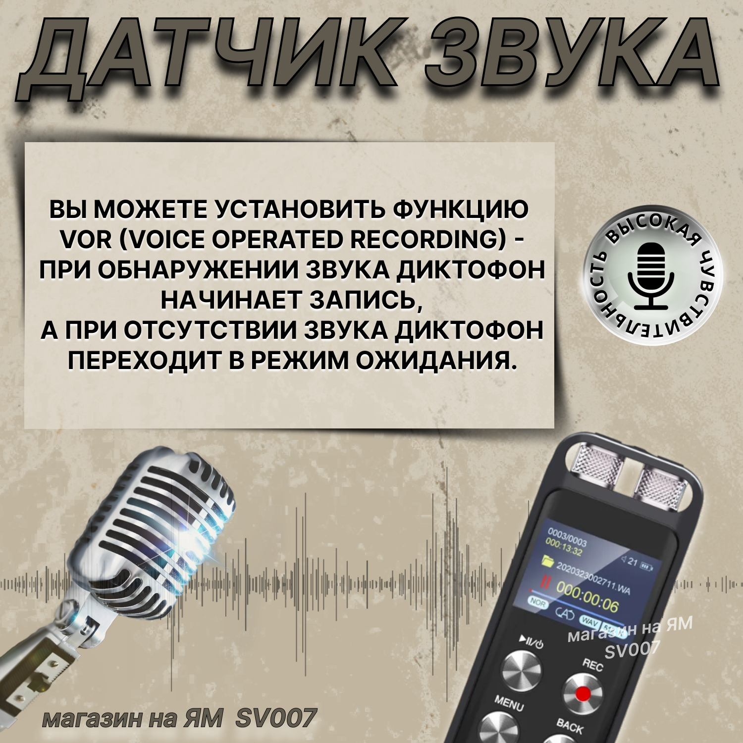 Цифровой диктофон со встроенным динамиком и дисплеем SV-04, встроенная память 8GB и внешняя 64 GB памяти, датчик звука, запись по таймеру, мониторинг, металлический корпус интересное: