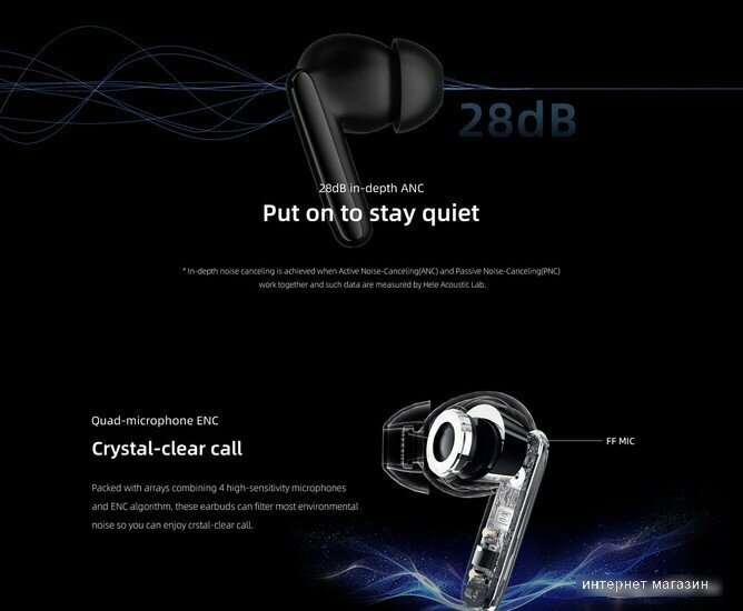| Комплектация | наушники, зарядный кейс, кабель для зарядки, комплект сменных амбушюр, документация, упаковка |