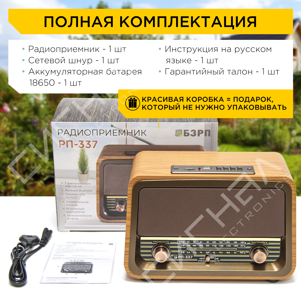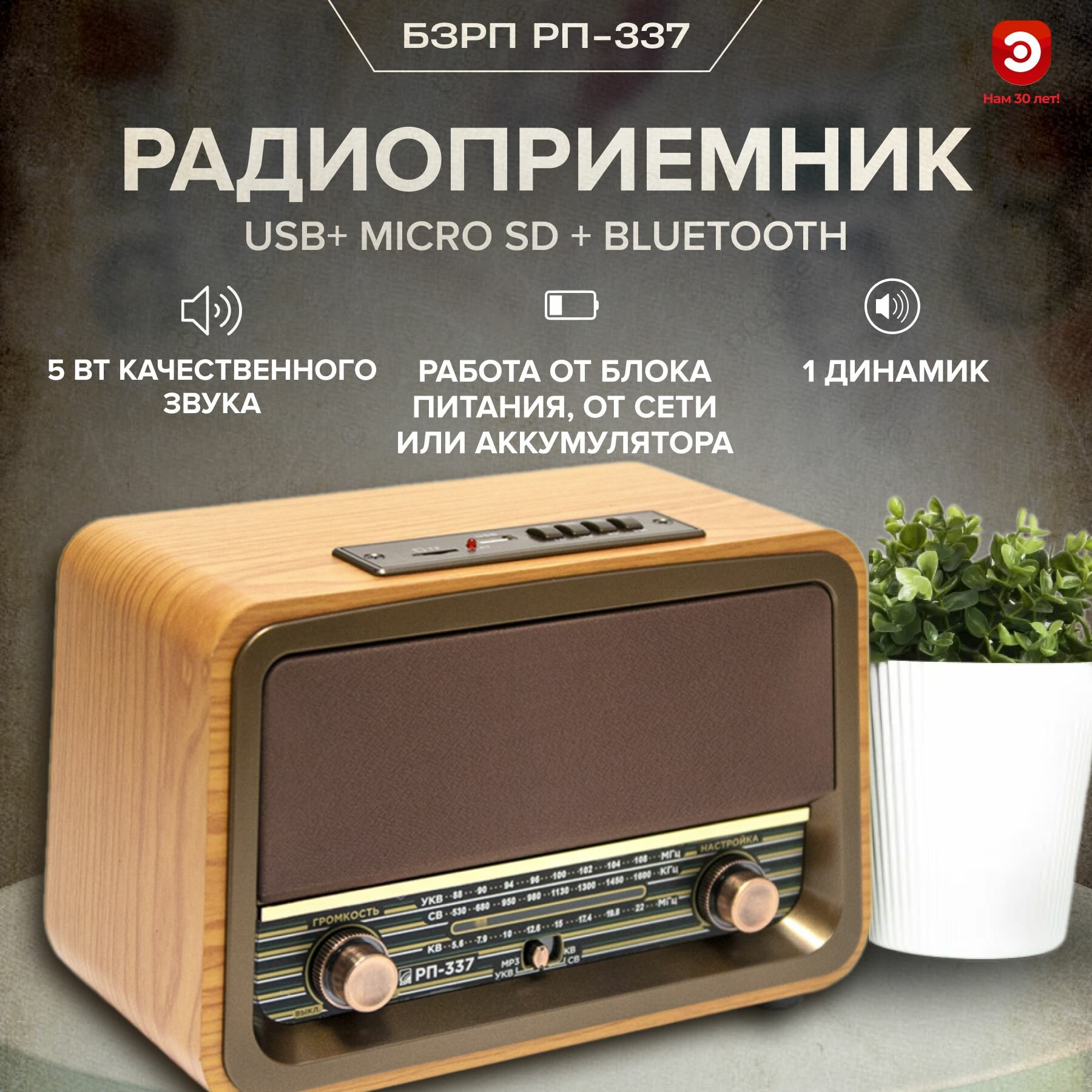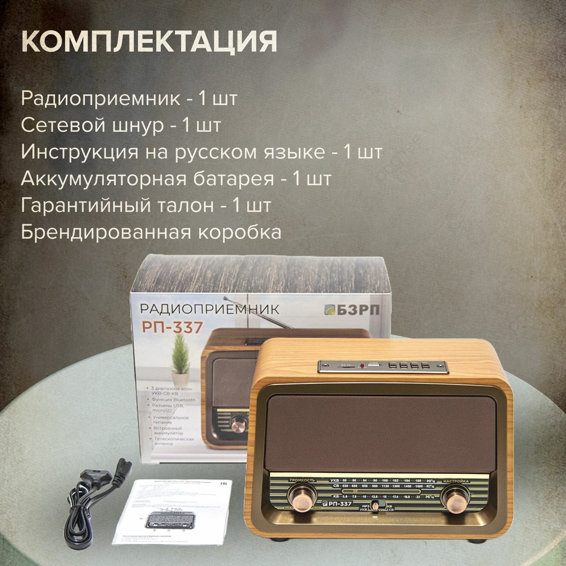Ретро радиоприемник от сети и аккумулятора БЗРП РП-337 / fm радио / блютуз колонка